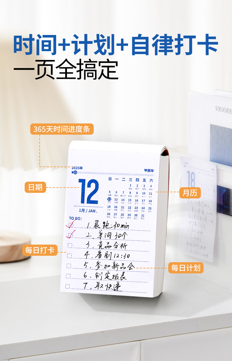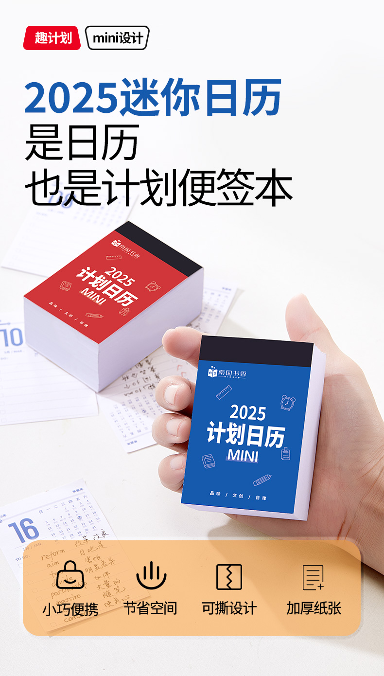 南国书香2025年新款迷你日历创意萌趣自律打卡计划本简约办公室桌面摆件学生便携记事本备忘录便签mini小台历