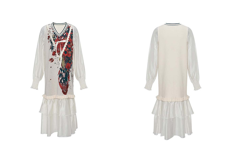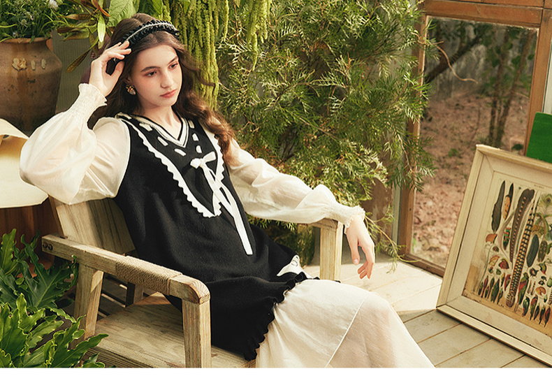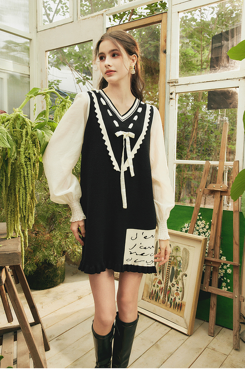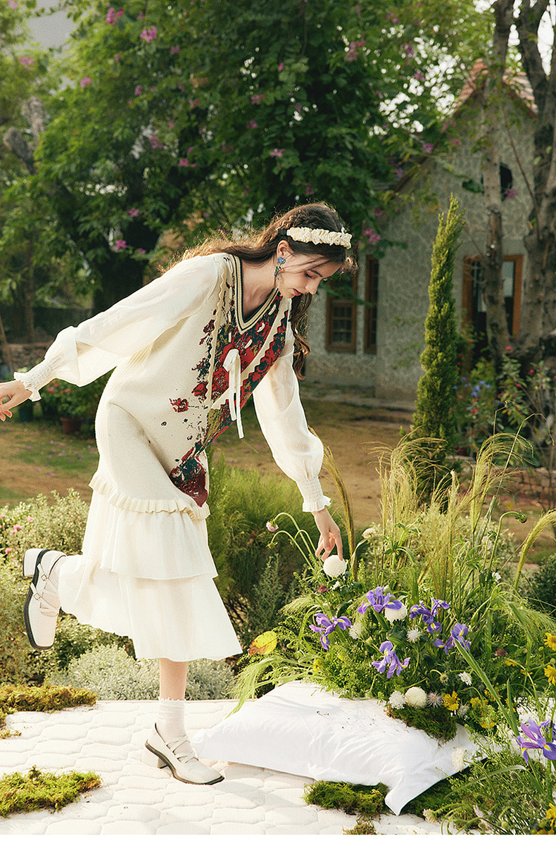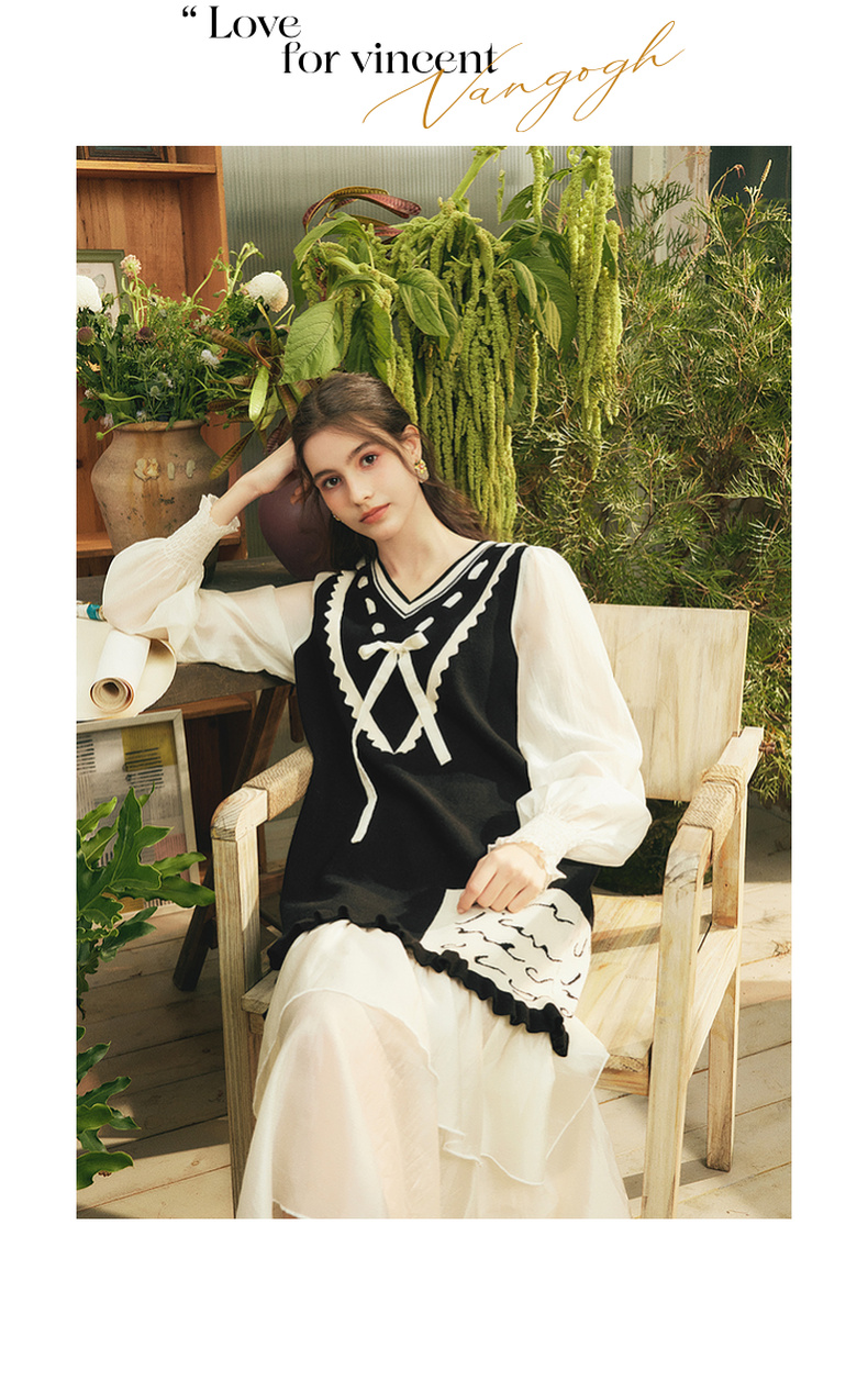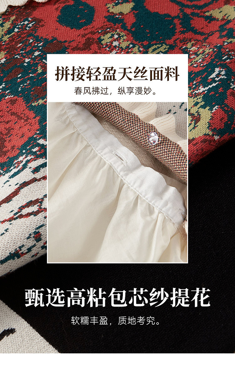 两三事梵高文艺梦核收集新款油画针织拼接可拆裙摆连衣裙