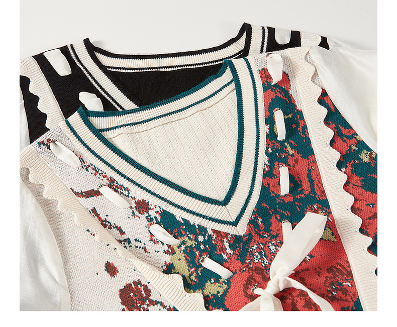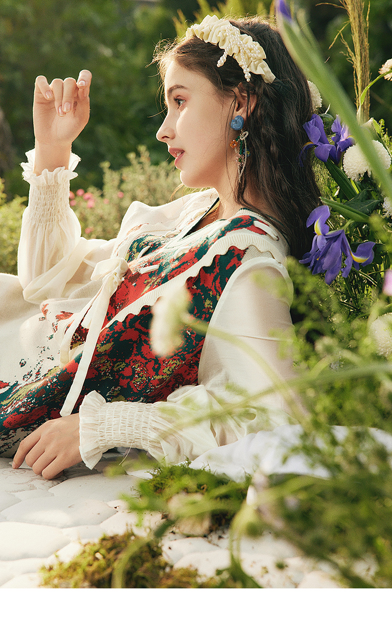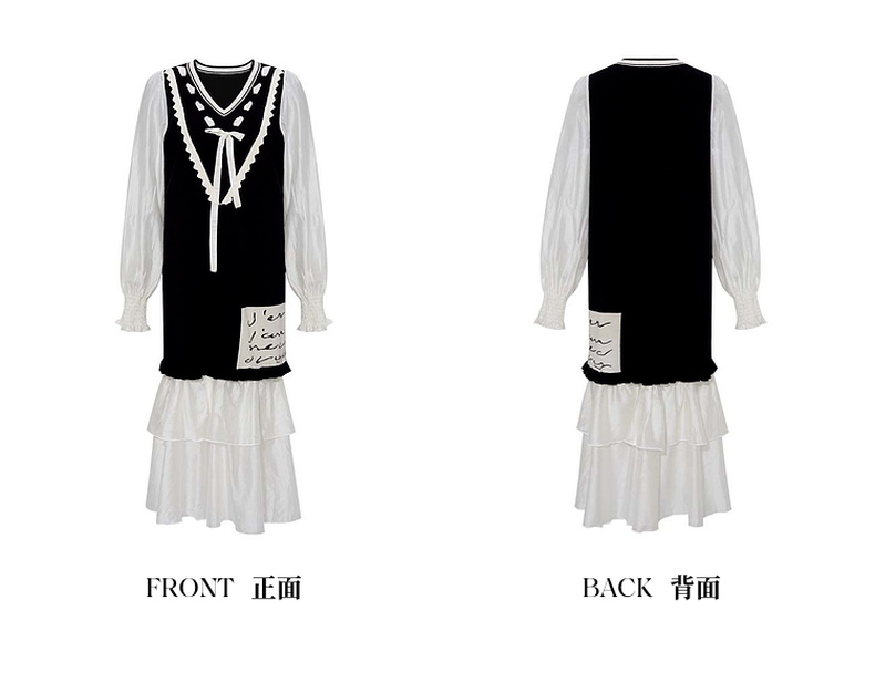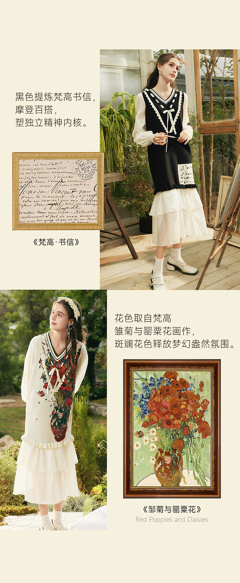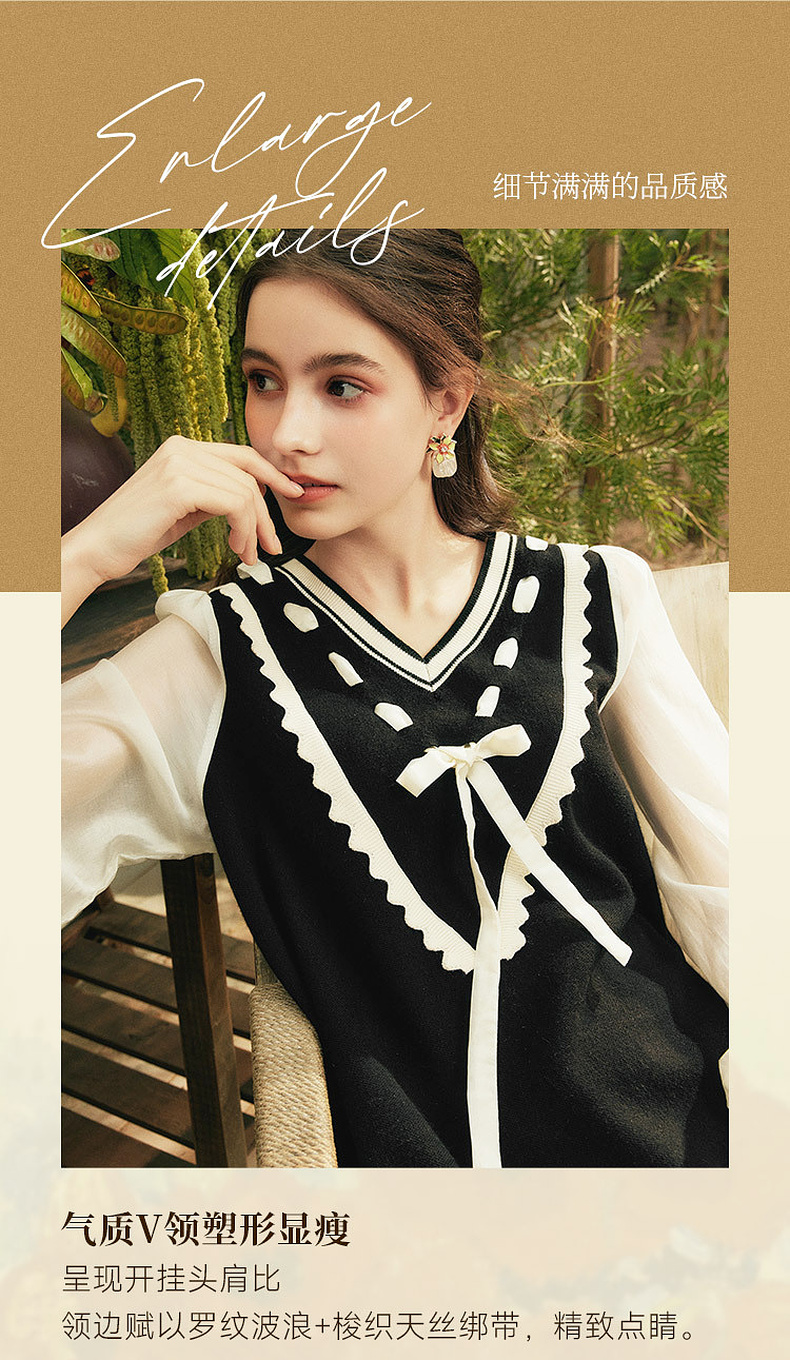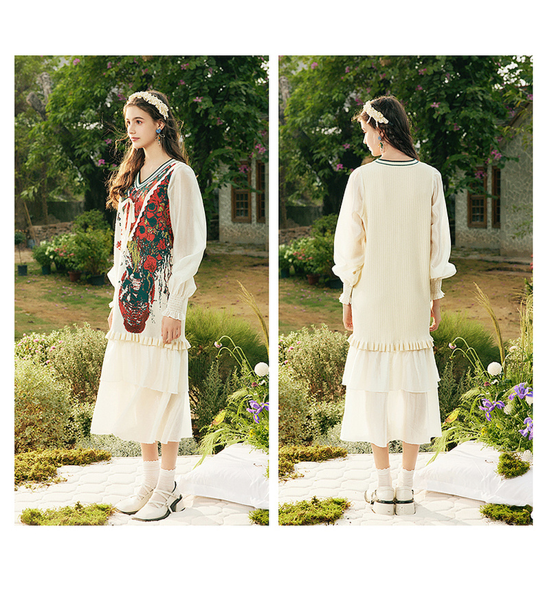 两三事梵高文艺梦核收集新款油画针织拼接可拆裙摆连衣裙