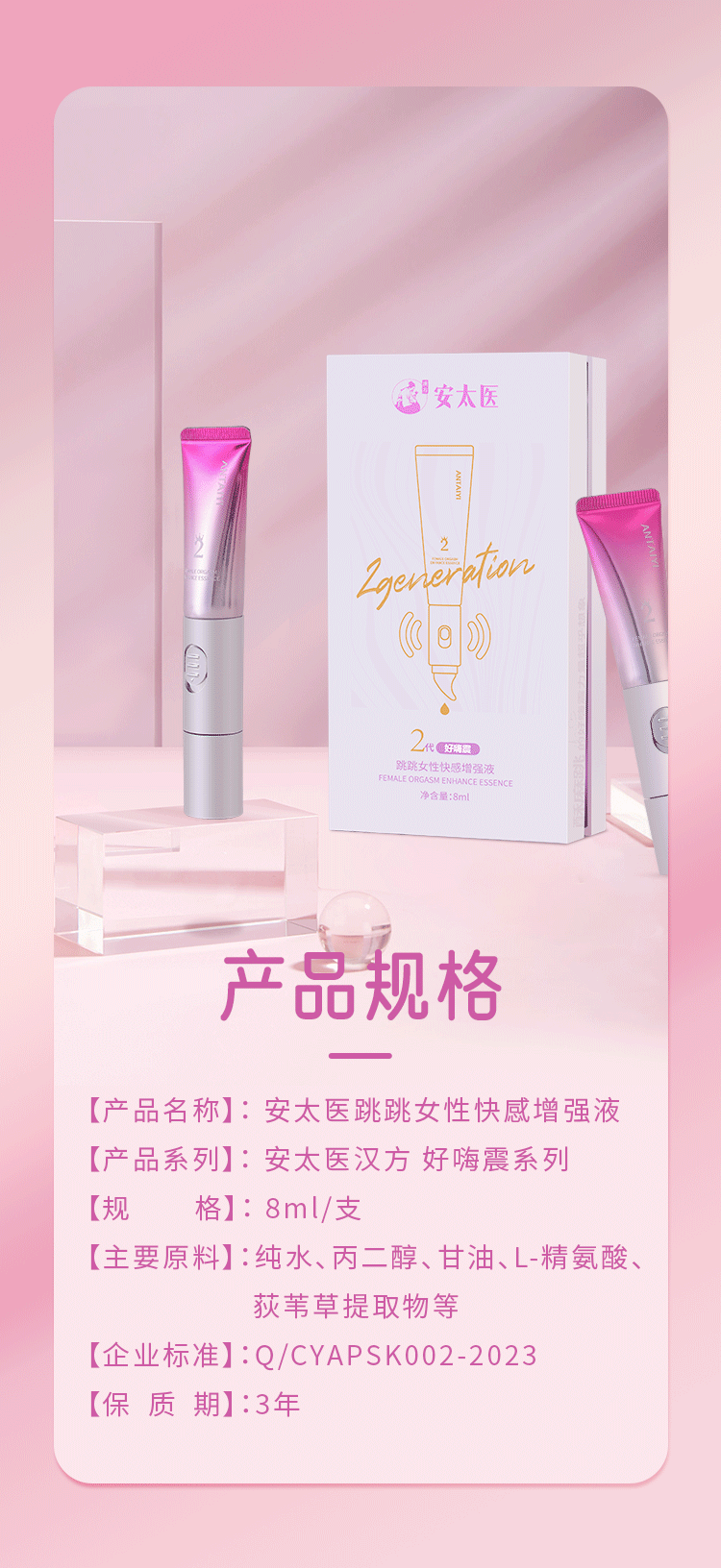 【直供】安太医跳跳高潮增强液好嗨震2代女性专用欲望夫妻性冷淡私处激情快感女用自震动情趣用品