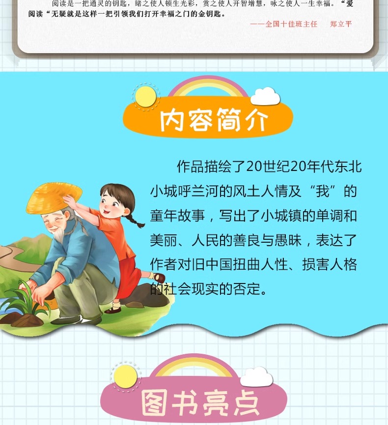 呼兰河传 爱阅读课程化丛书中小学生语文中国世界名著青少年无障碍精读中小学课外阅读青少版