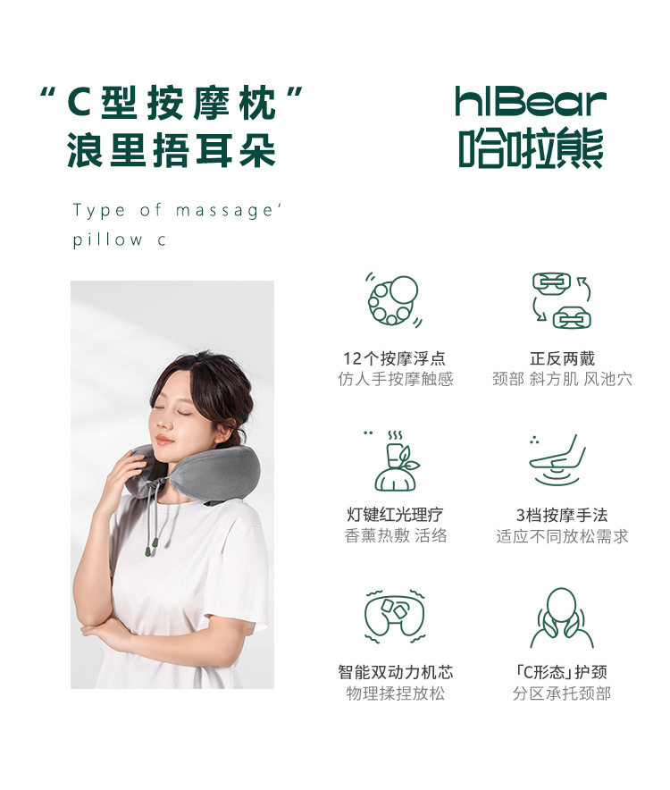 【释放颈椎压力】家用C型颈椎按摩器电动揉捏多功能便携式办公室午睡颈肩按摩枕,三档按摩手法,满足不同需求。ry