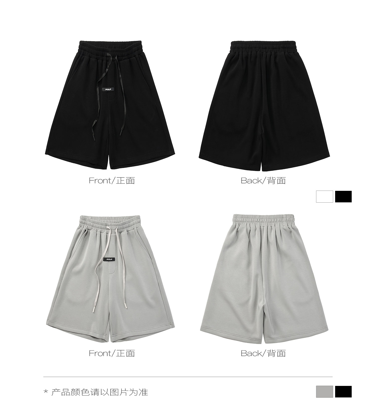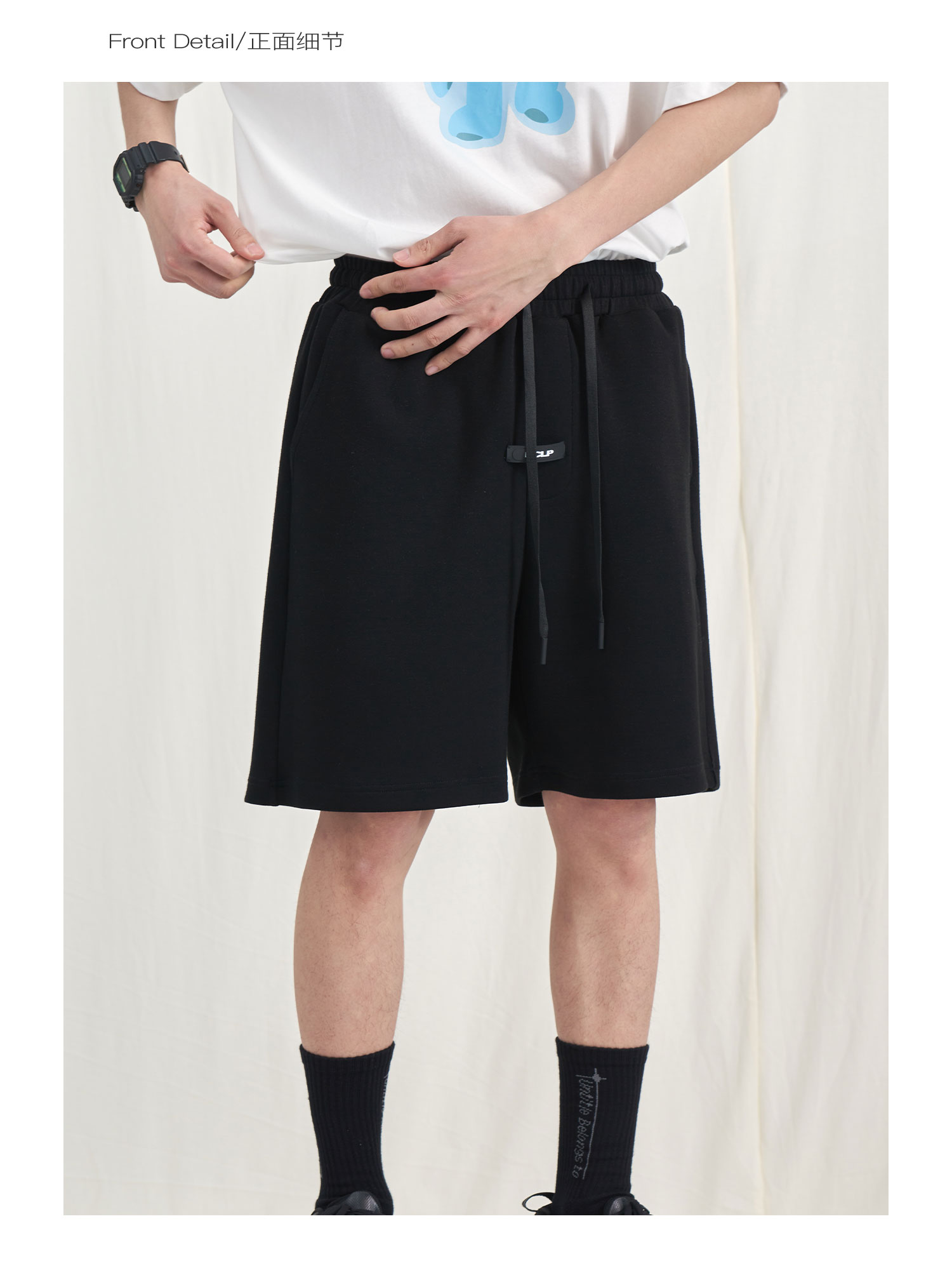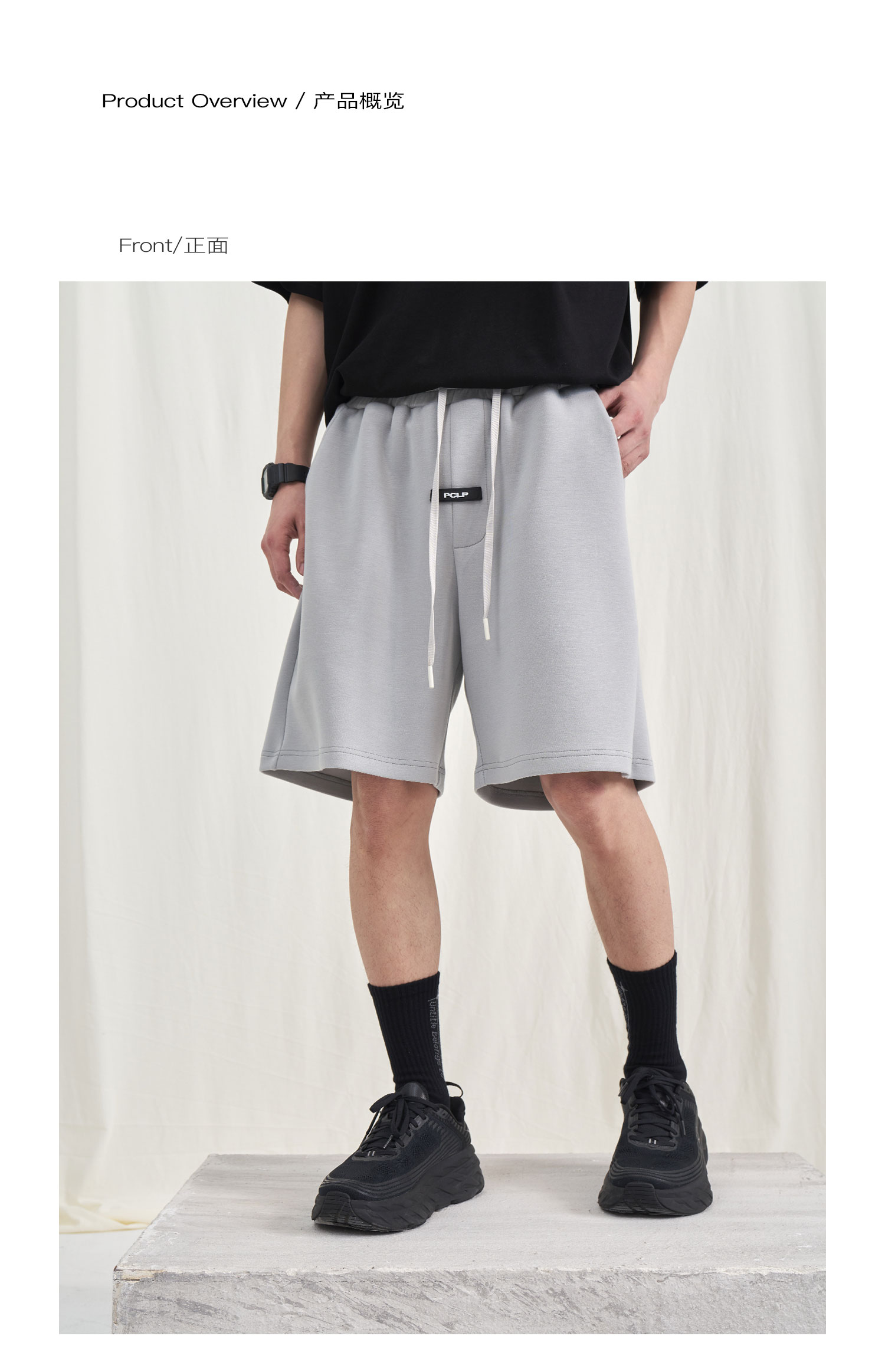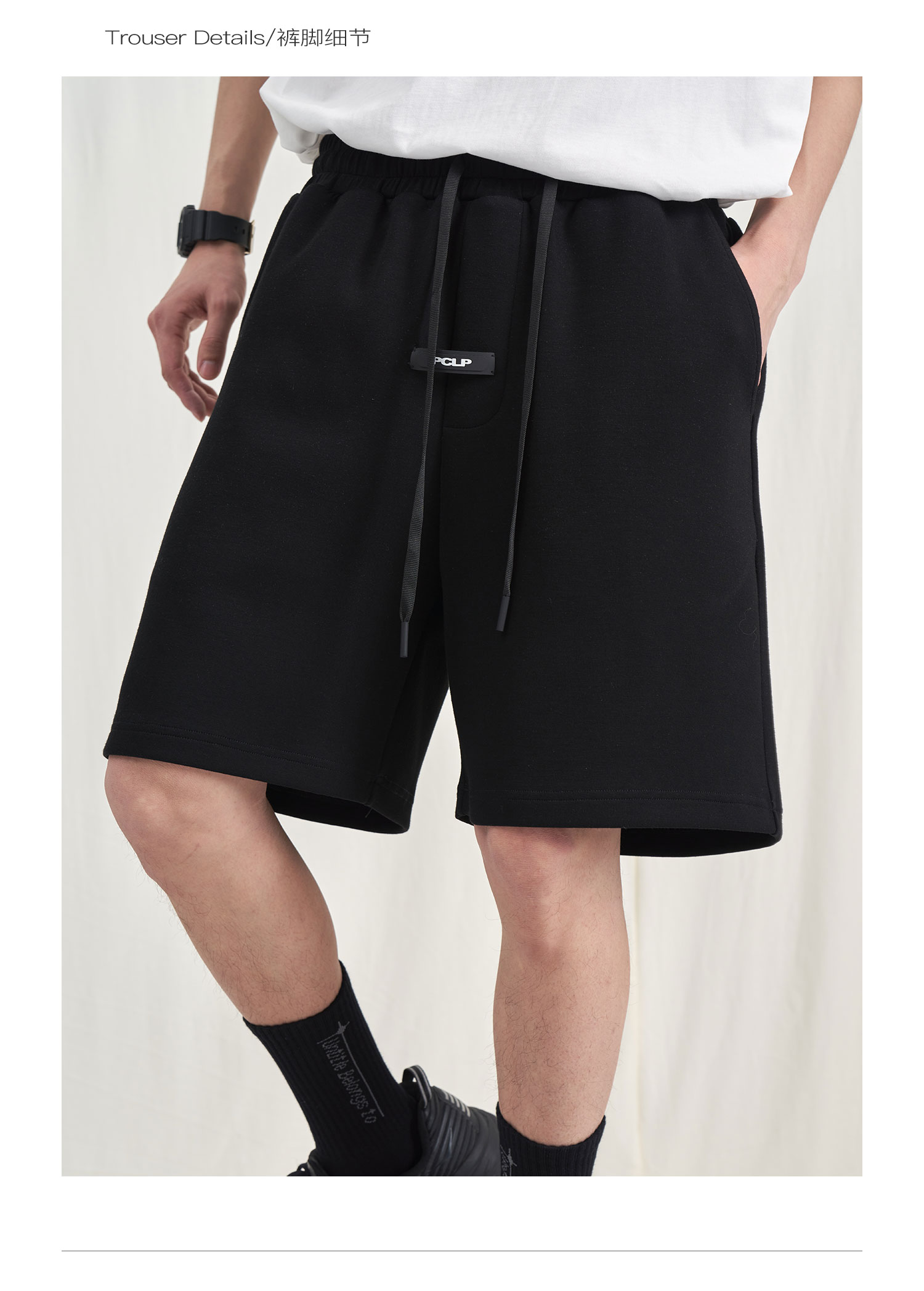 PCLP(PERCLIPS) 胶牌抽绳短裤 国潮牌潮流夏季宽松休闲运动五分裤