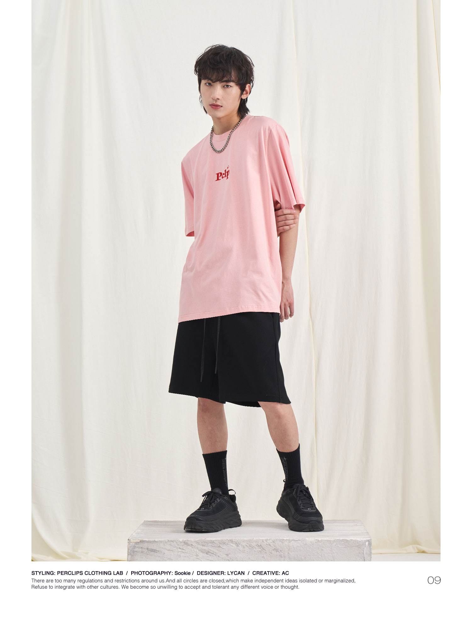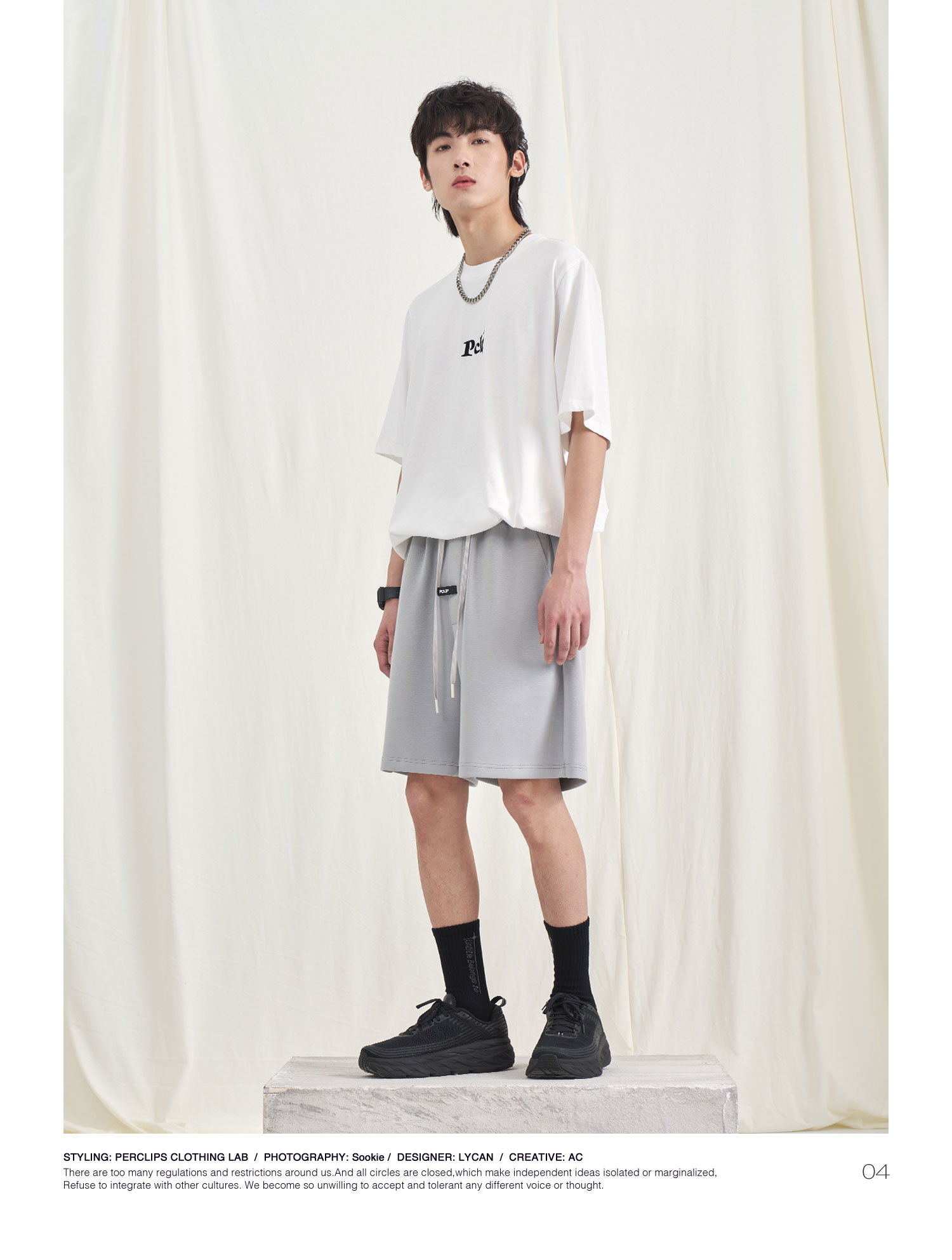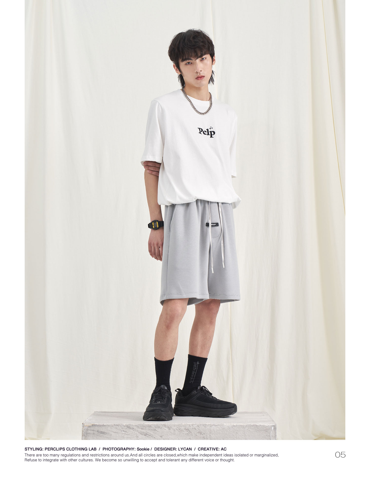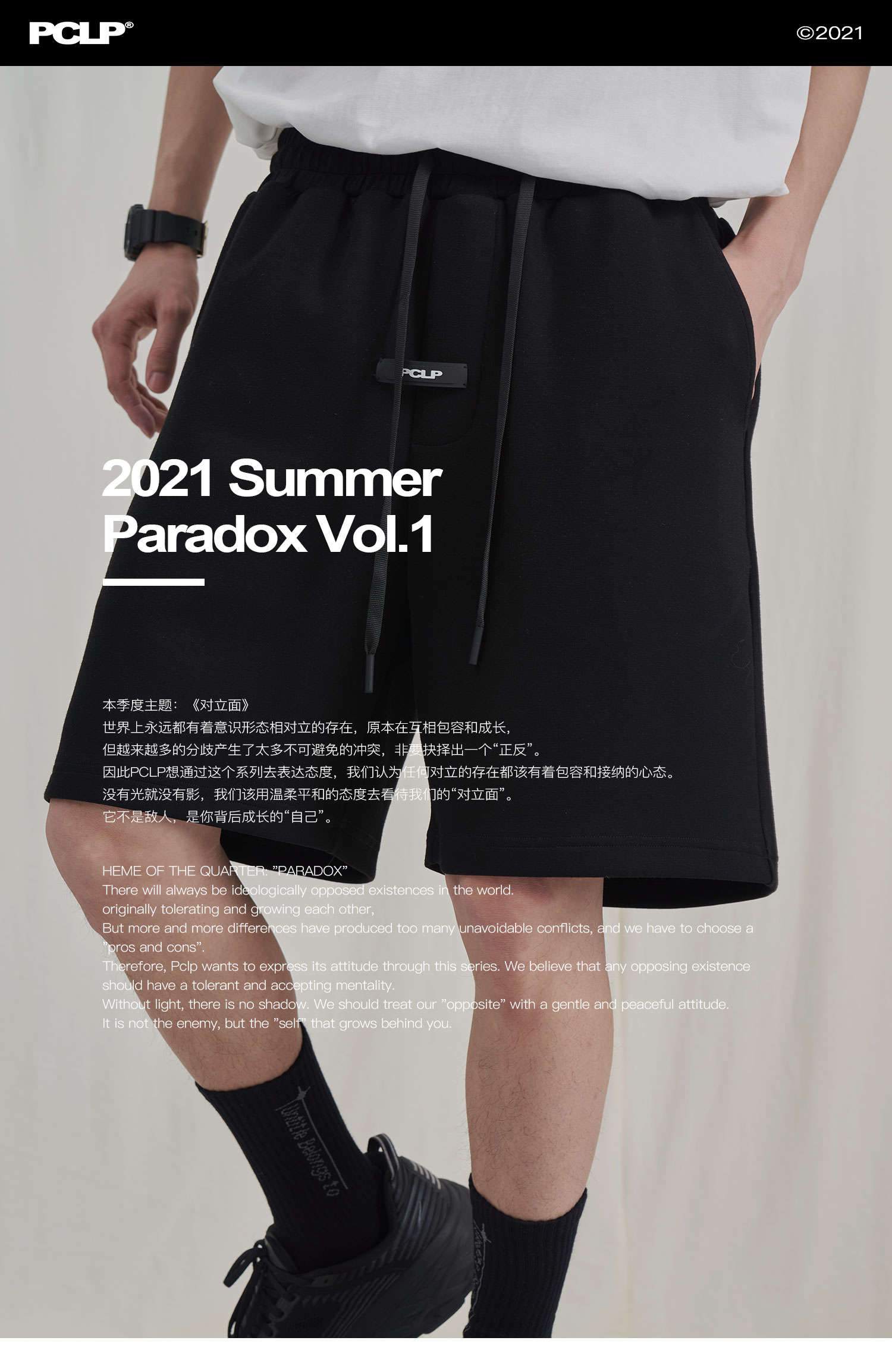 PCLP(PERCLIPS) 胶牌抽绳短裤 国潮牌潮流夏季宽松休闲运动五分裤