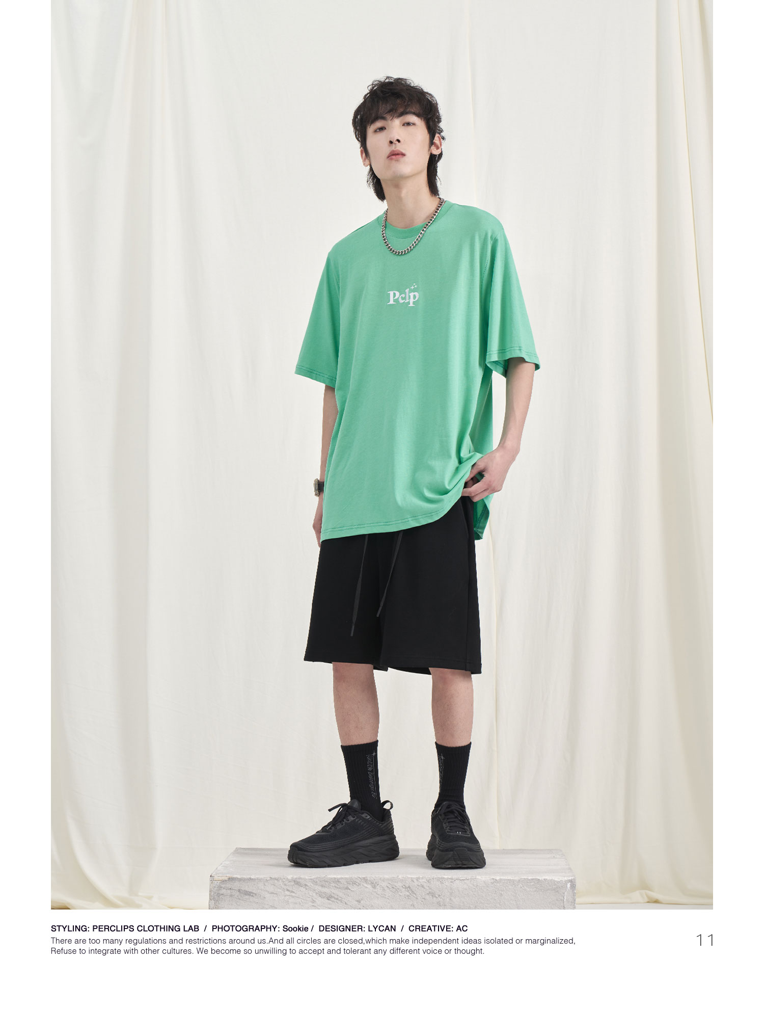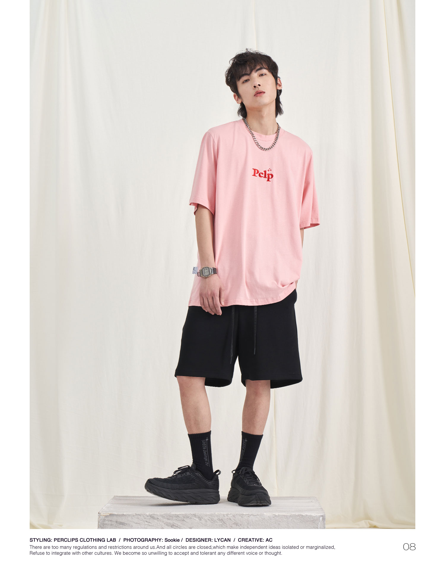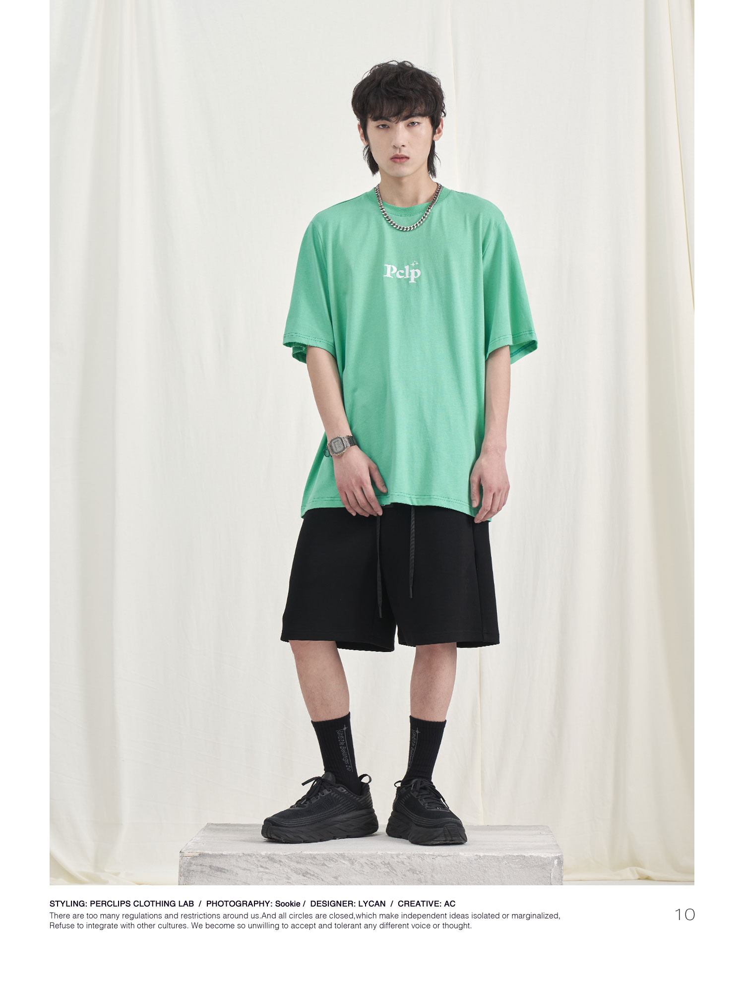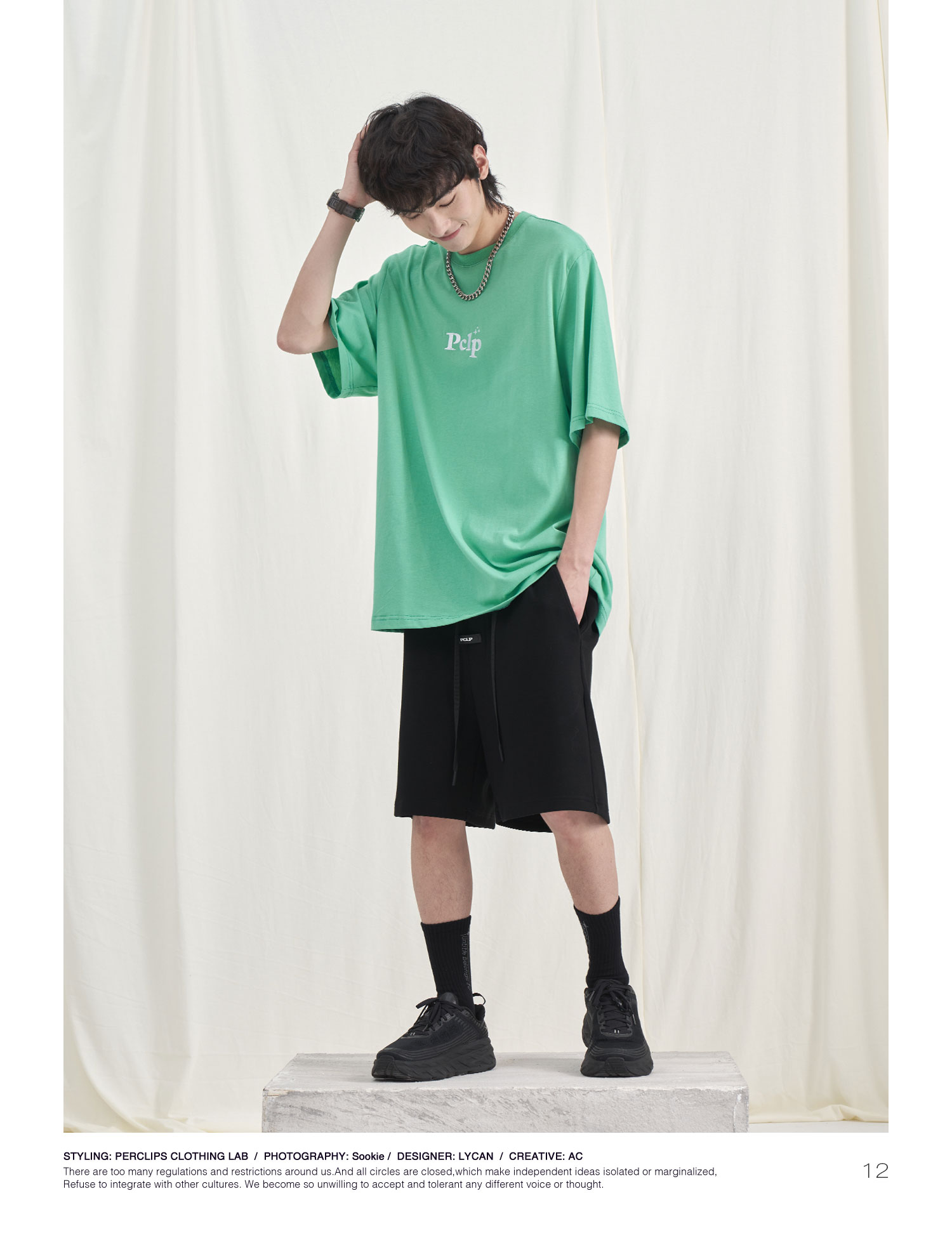 PCLP(PERCLIPS) 胶牌抽绳短裤 国潮牌潮流夏季宽松休闲运动五分裤