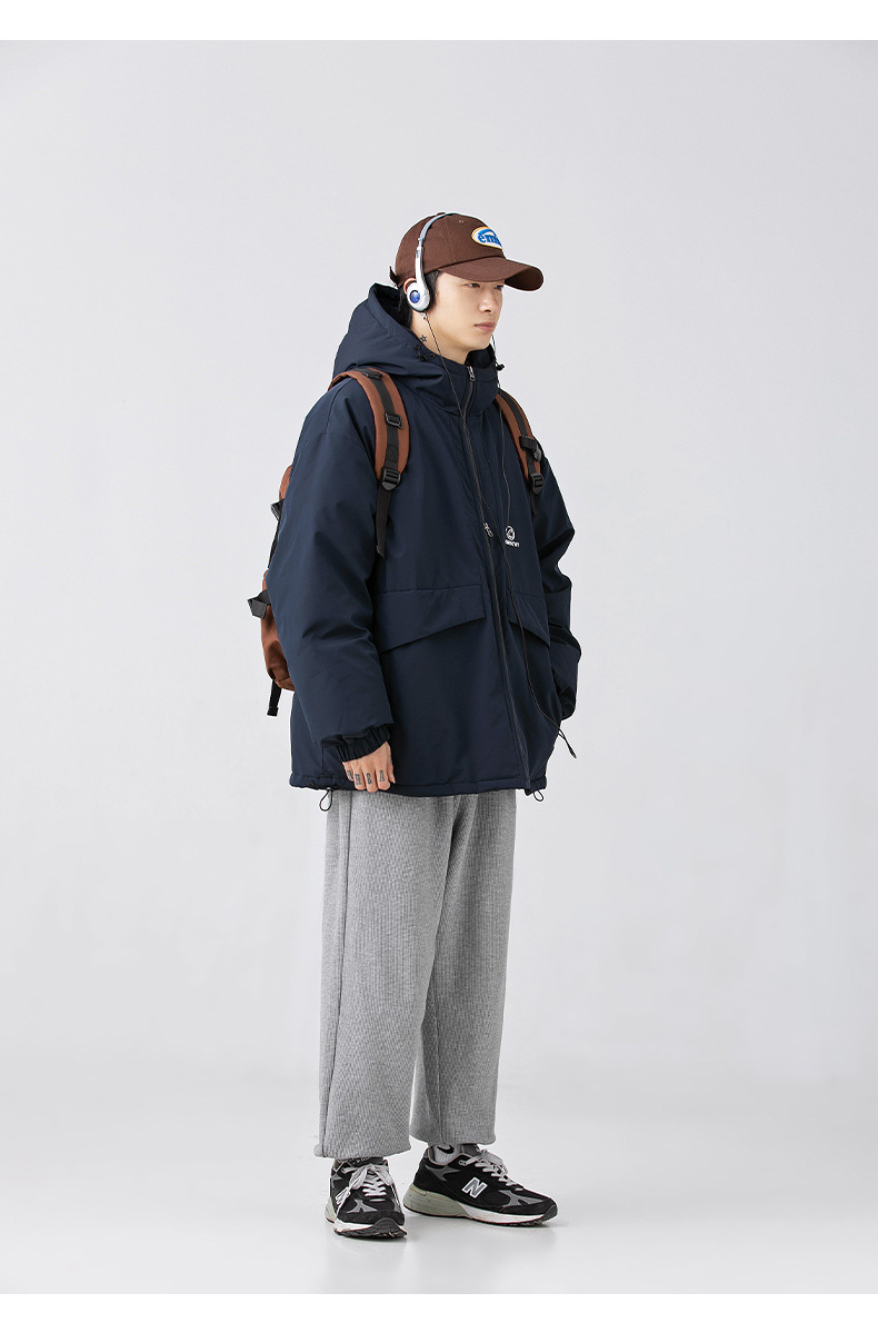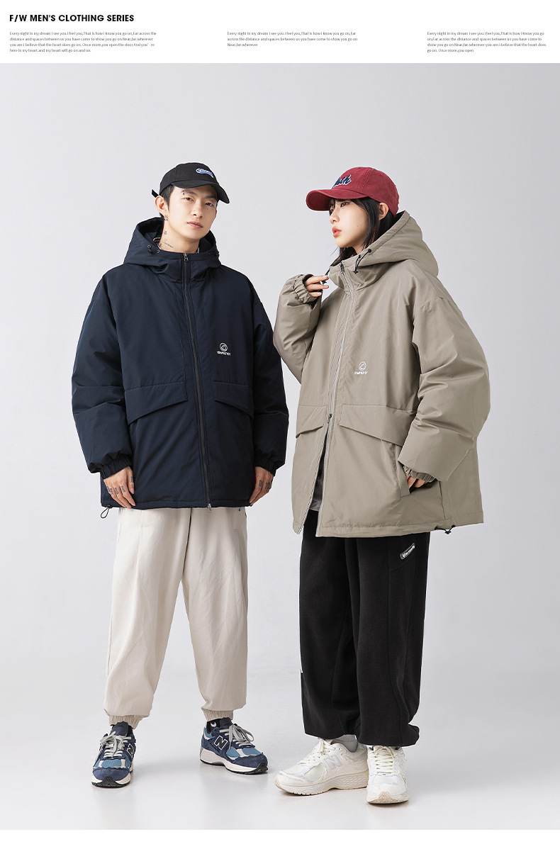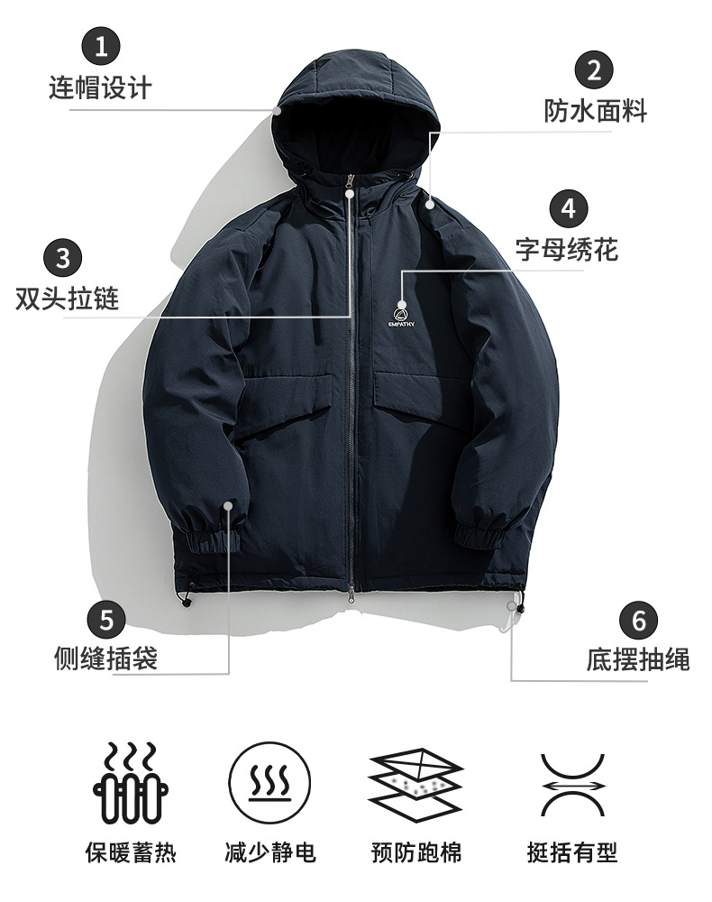 【春节不打烊】「两款配色!抗风防水保暖」韩路日系男装 机能连帽棉服男冬季情侣新款棉衣加厚户外外套上衣