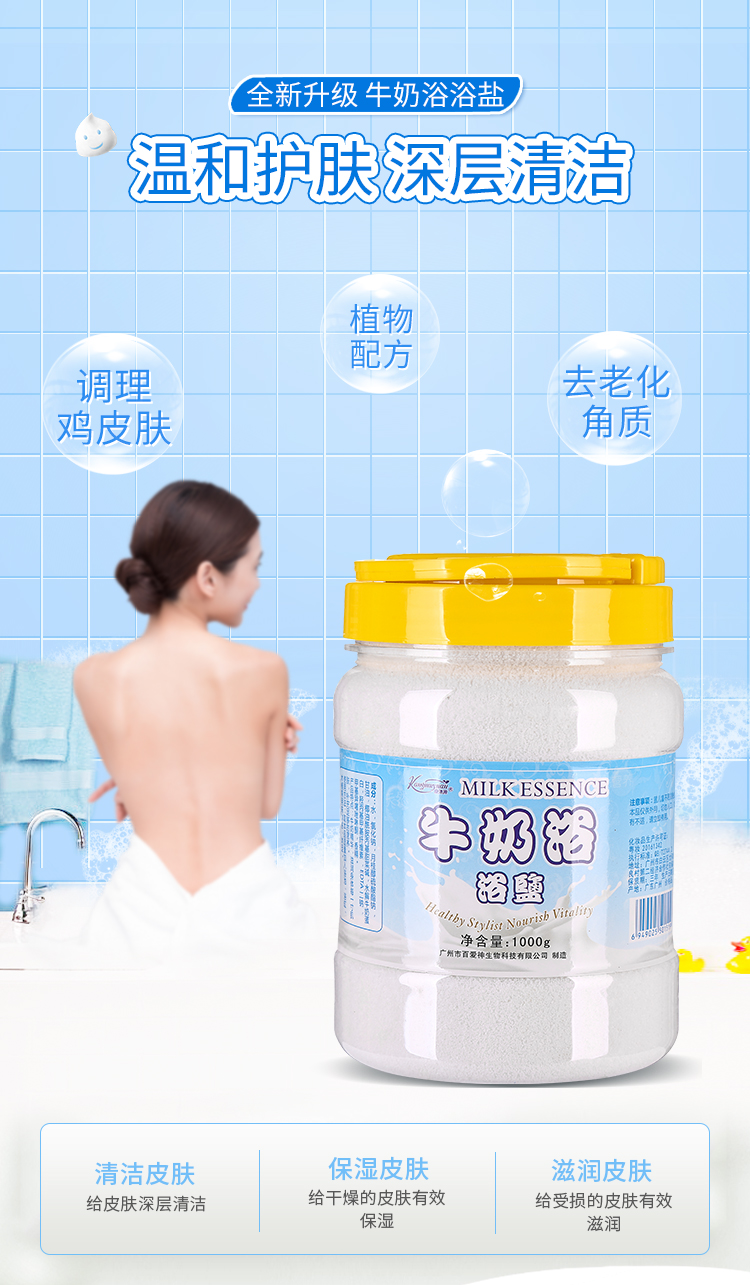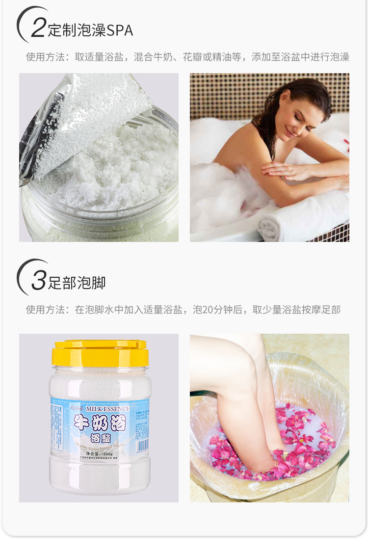 1kg牛奶浴盐泡脚泡澡全身沐浴香浴盐去角质去鸡皮肤美甲足浴搓盐