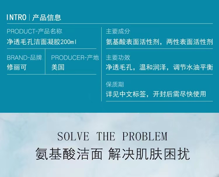 修丽可净透毛孔洁面啫喱200ml / 750ml,两种规格可选