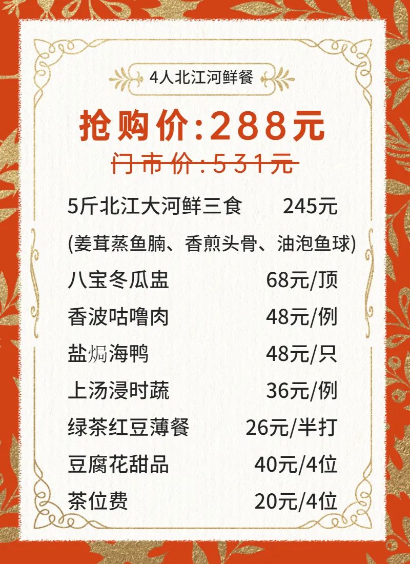 ◆ 套餐包含菜品需1次消费完毕,不可拆分不同日期享用,部分菜品若因时令或其他不可抗因素导致无法提供,将视实际情况以等价菜品替换