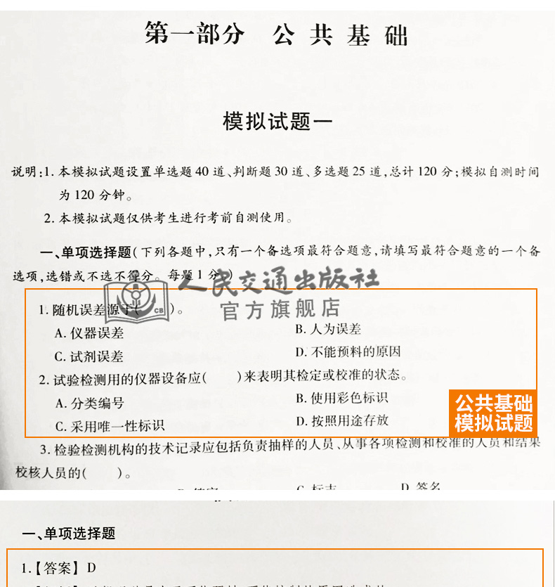 正版现货 2017职业资格考试辅导丛书 公路水运工程试验检测师考前冲刺模拟试题(公共基础+道路工程)2017公路水运 水运工程