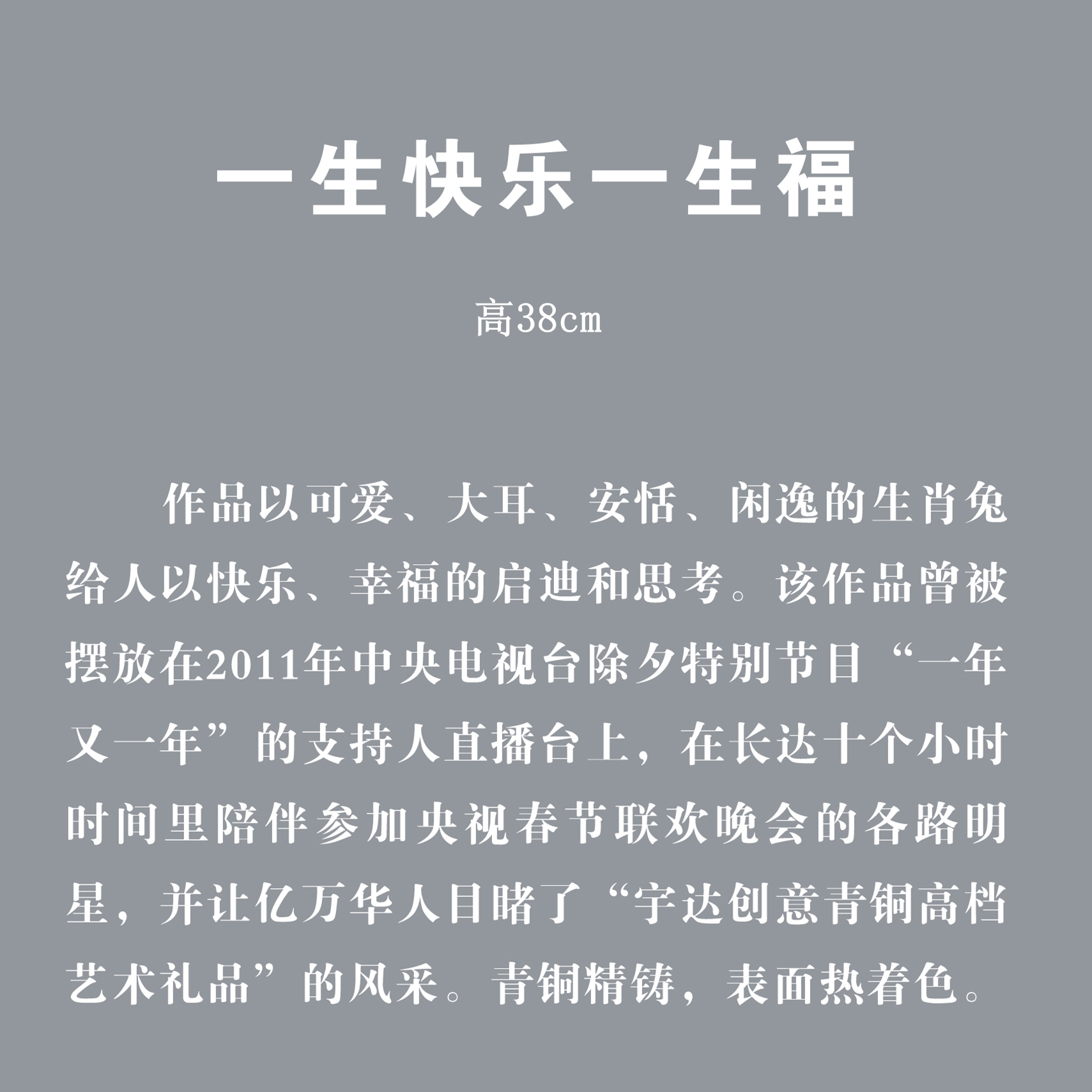 宇达青铜摆件 十二生肖兔《一生快乐一生福》创意装饰 家居工艺摆件 高38cm