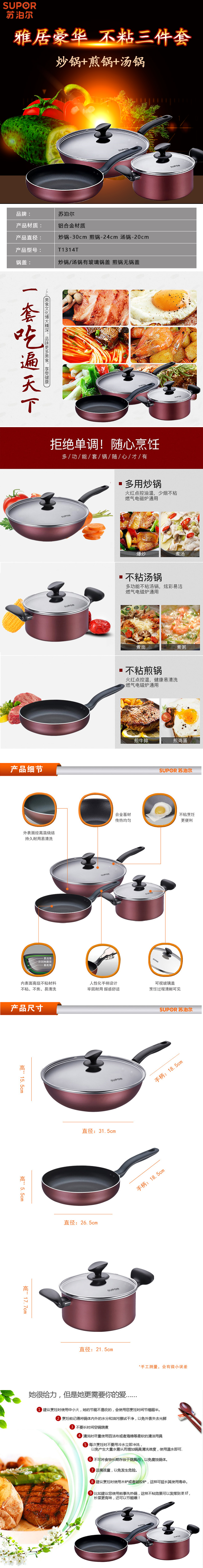 苏泊尔(SUPOR)苏泊尔炒锅 雅居豪华不粘锅三件套铝合金 炒锅汤锅煎锅通用三件套炒锅+汤锅+煎锅T1314T