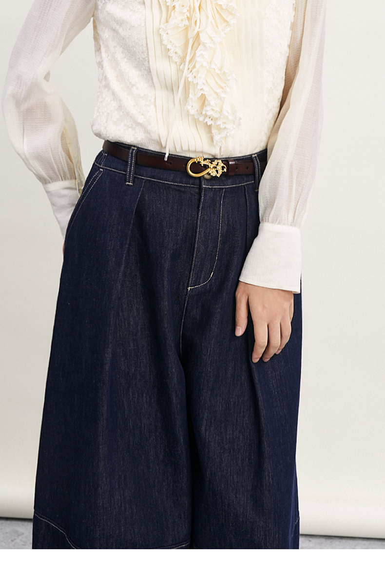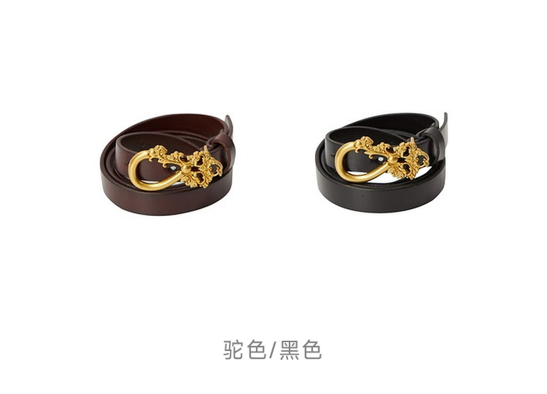 谜底牛皮革腰带女2024年夏季新品复古百搭雕花扣头皮带242MQ0907