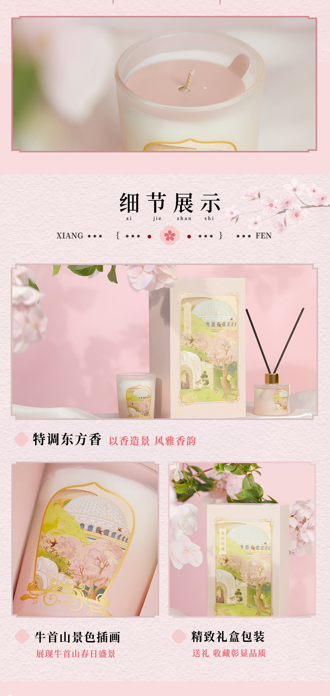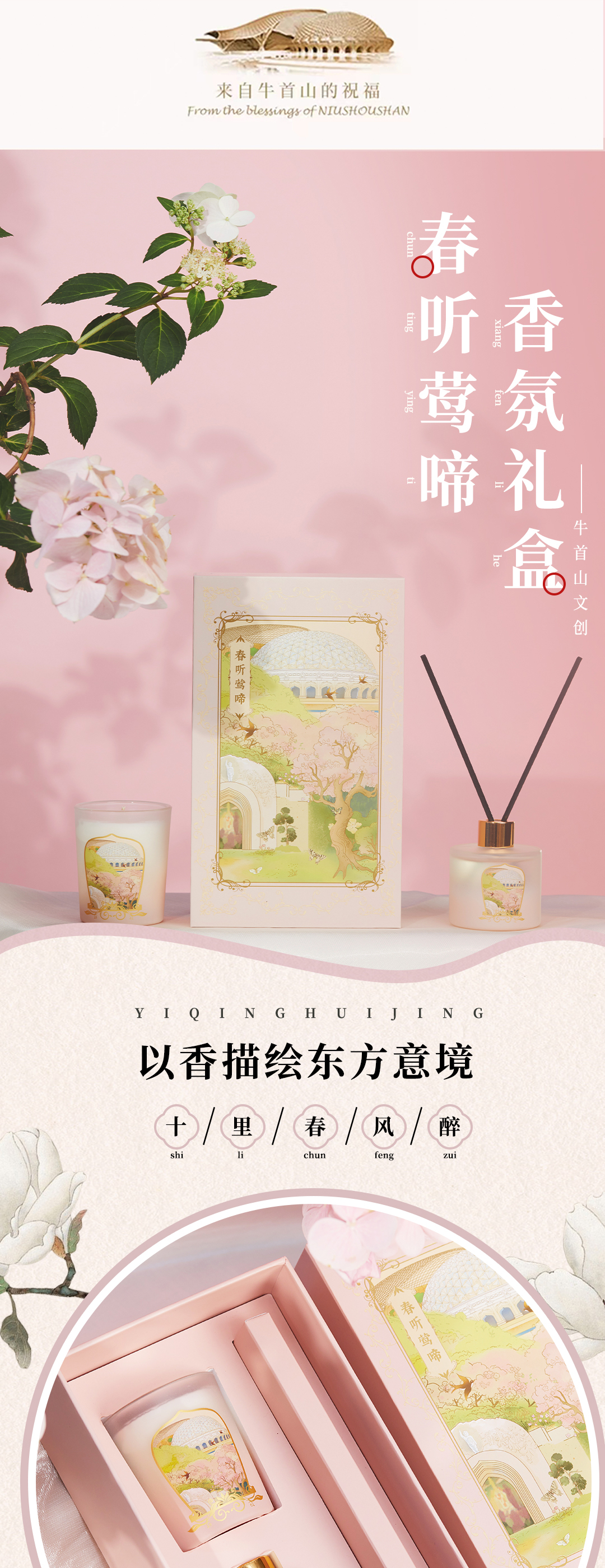 牛首山春听莺啼香氛礼盒蜡烛熏香散香器清新持久高级家用房间卧室