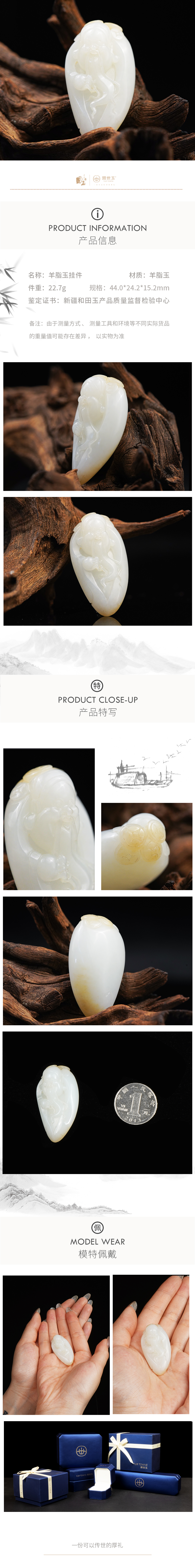 新疆国玉盟世玉羊脂玉挂件(人物)【带证书·顺丰物流】