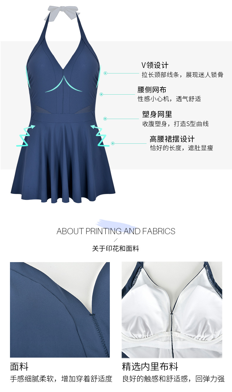| 袖长: 无袖 | 款式: 裙式连体泳衣 |
