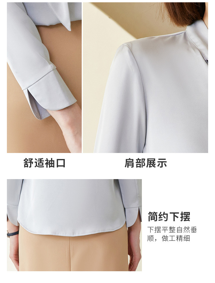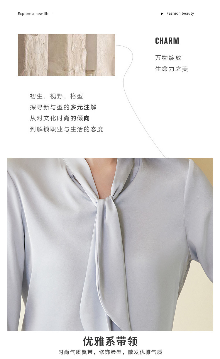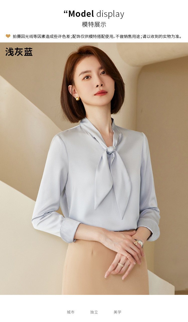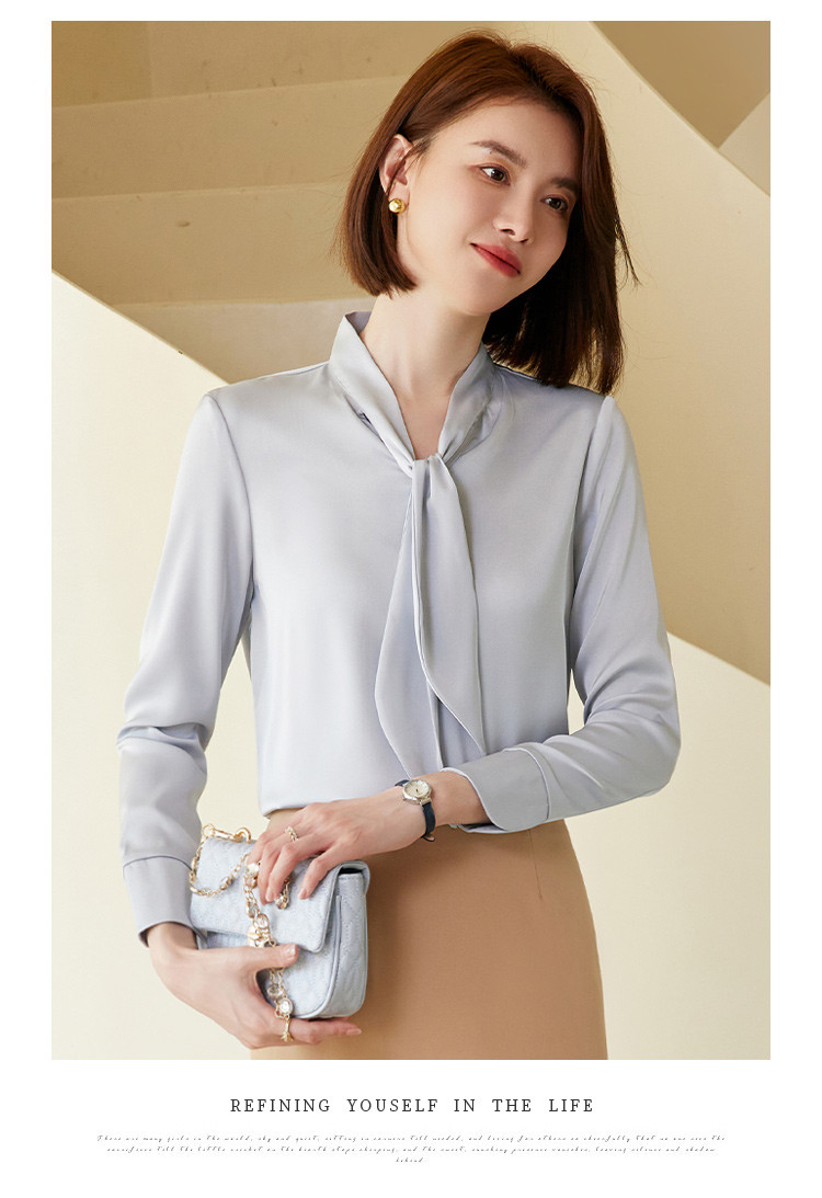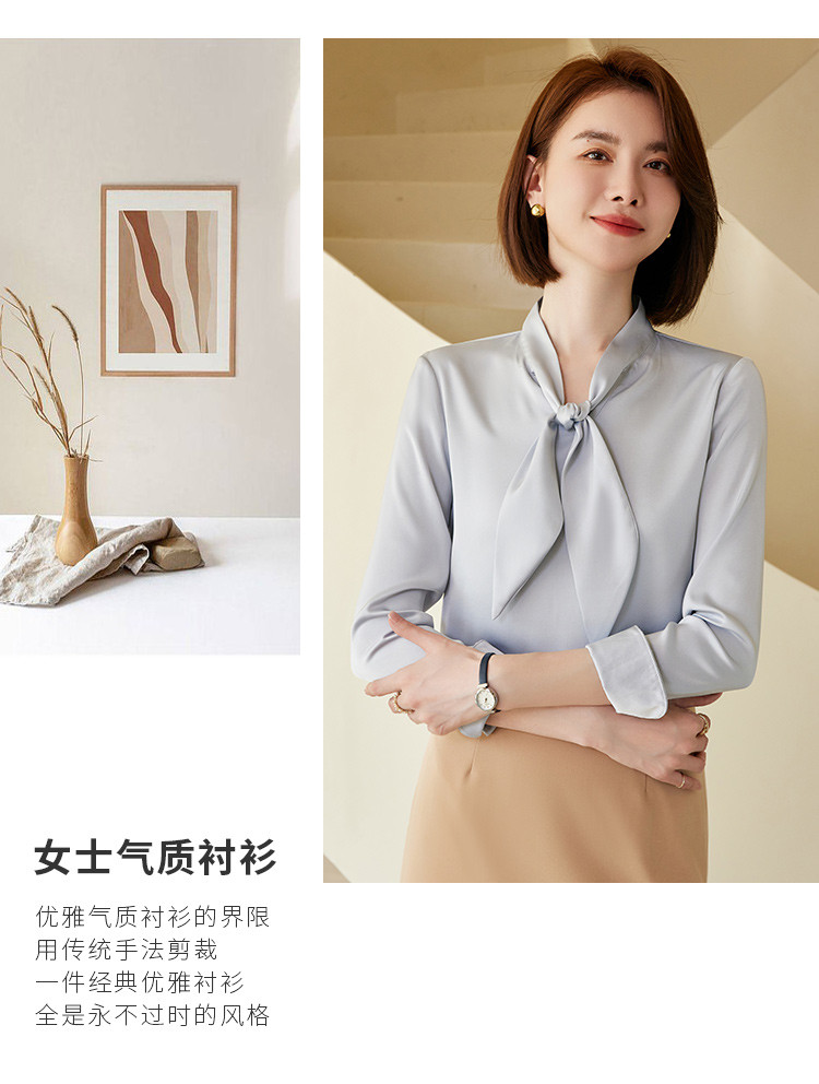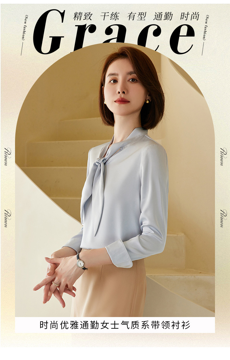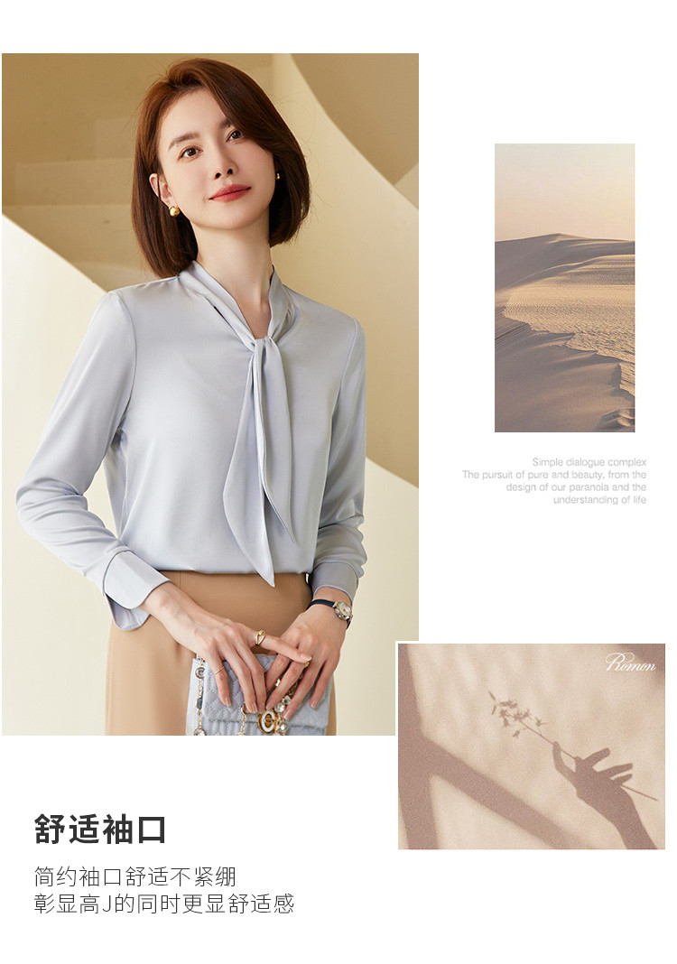 【气质系带领】罗蒙春夏女装长袖衬衫女士休闲百搭商务通勤套头气质飘带缎面衬衣