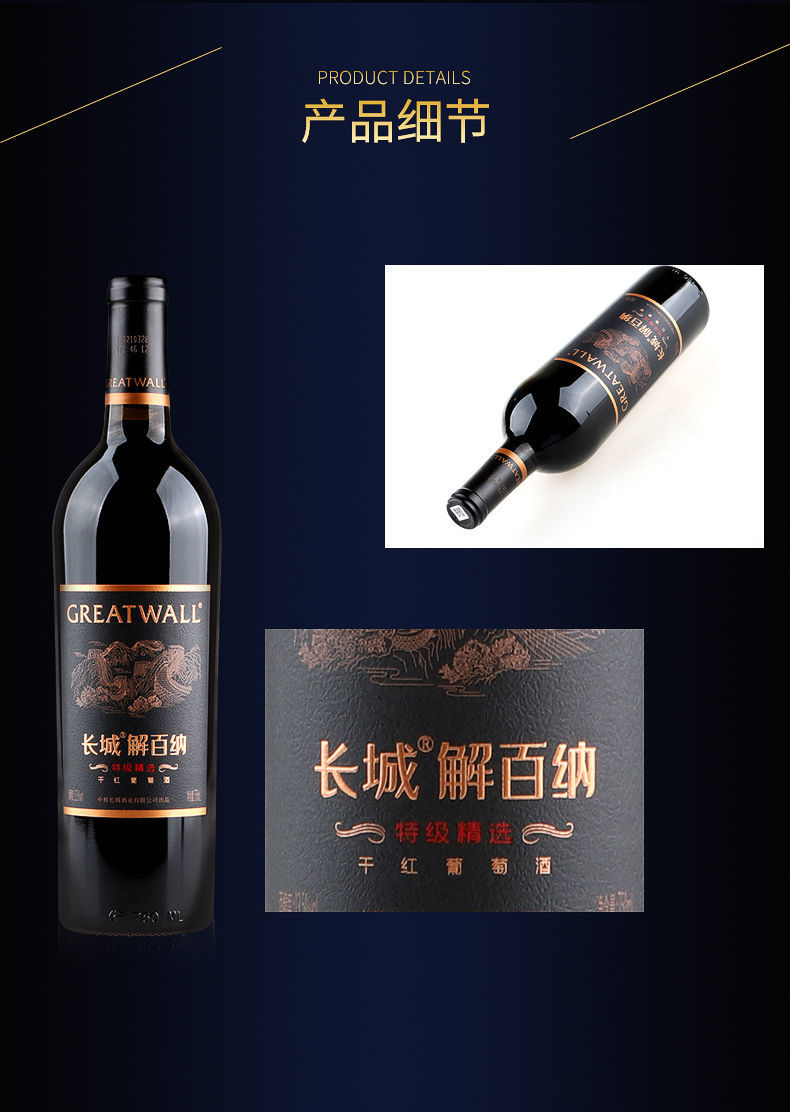 中粮长城特级黑金解百纳干红葡萄酒 整箱750ml*6瓶包邮