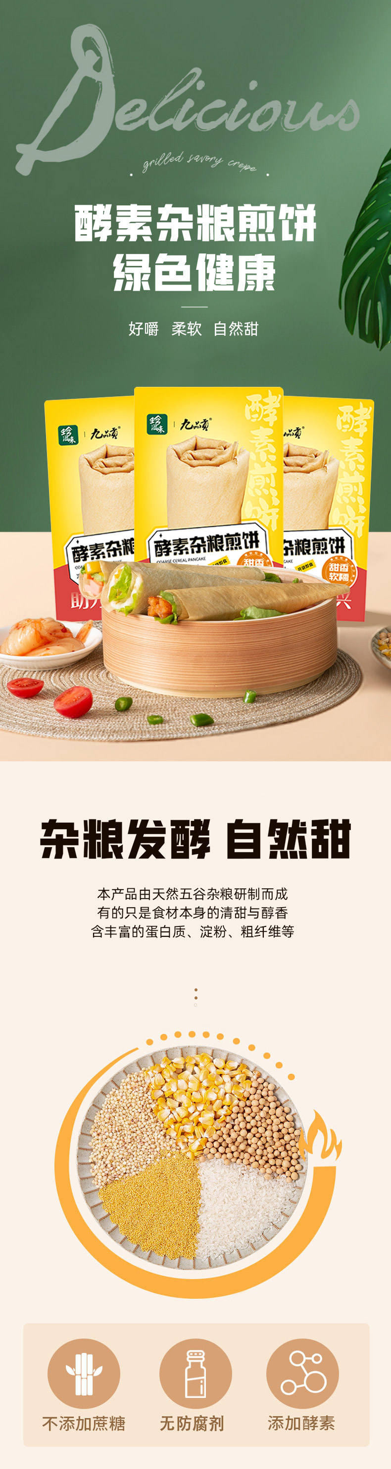 珍滋味*九品贡联合出品 山东特产酵素杂粮煎饼50g/袋