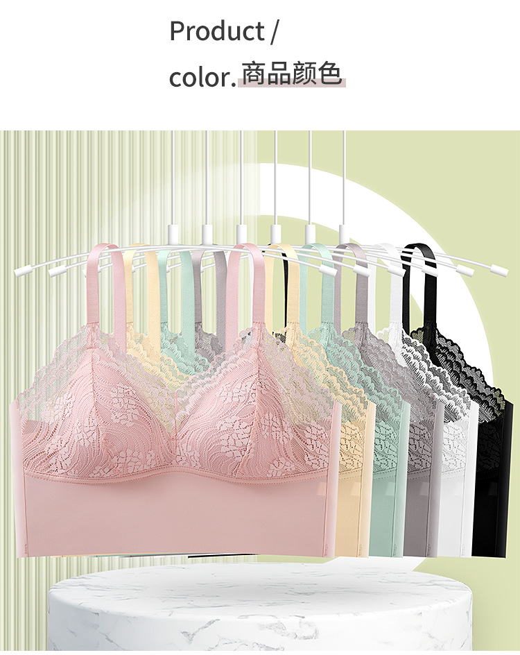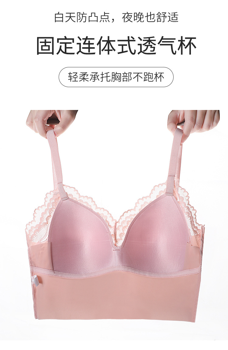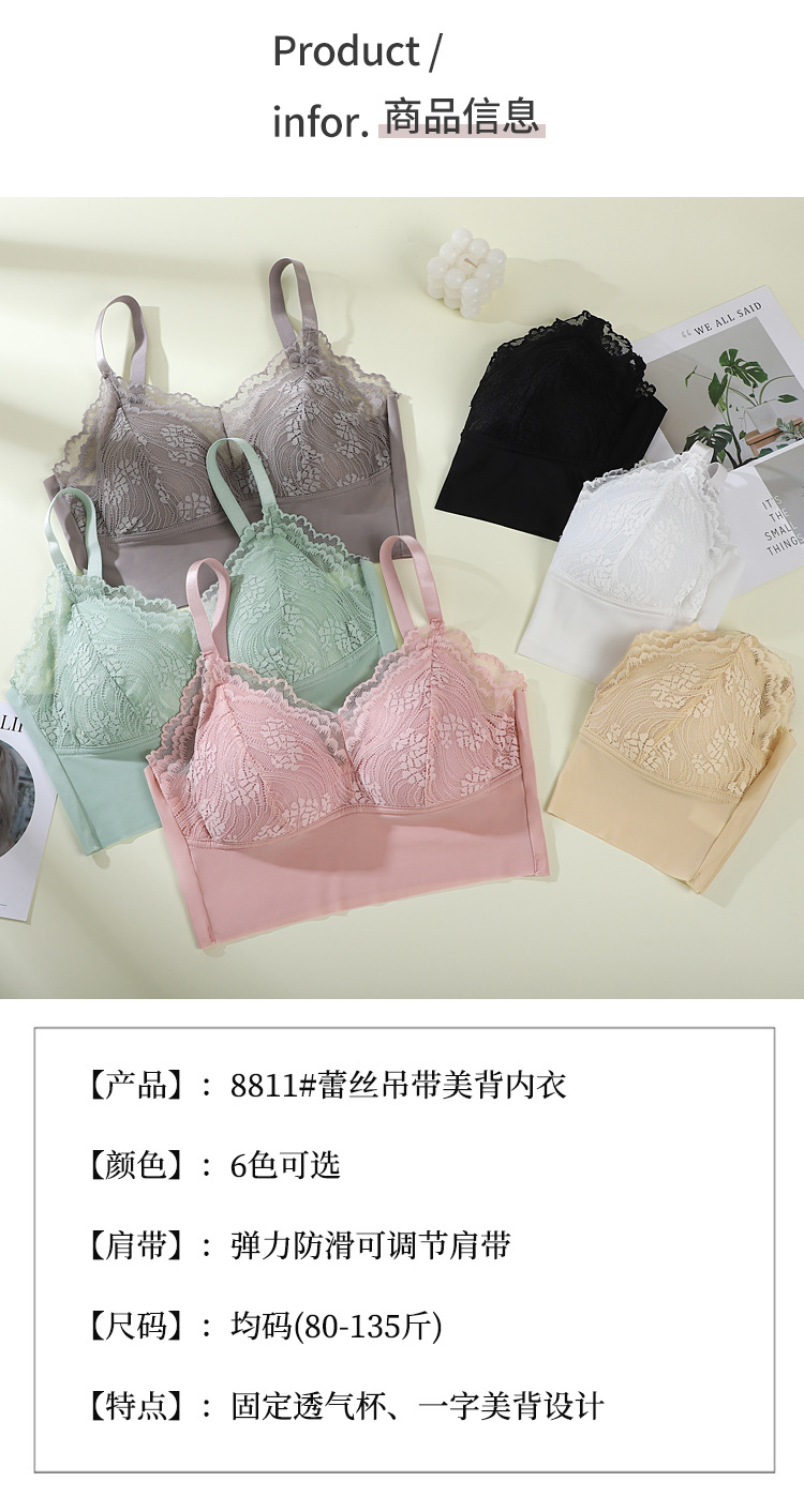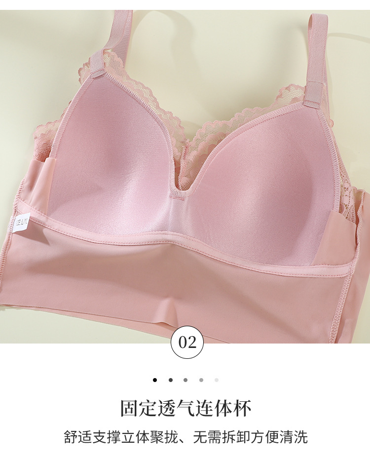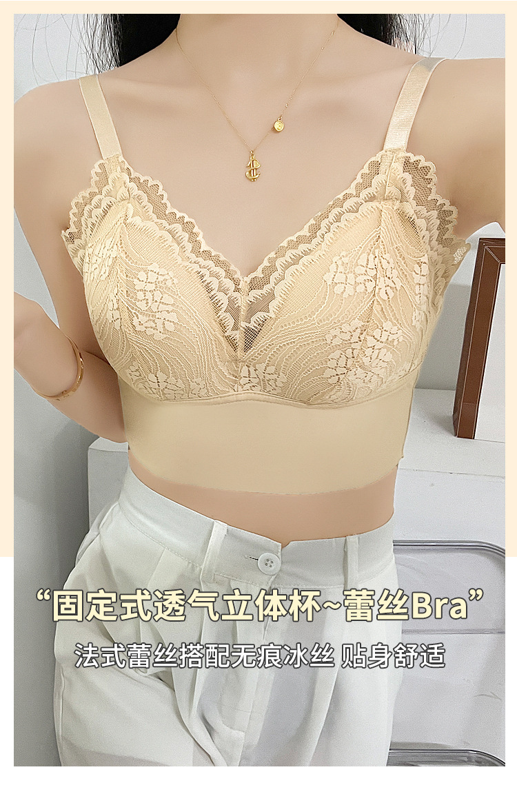 【法式蕾丝 性感美背内衣】蕾丝一体式固定杯 美背内衣女无钢圈 聚拢透气 舒适性感吊带裹胸抹胸