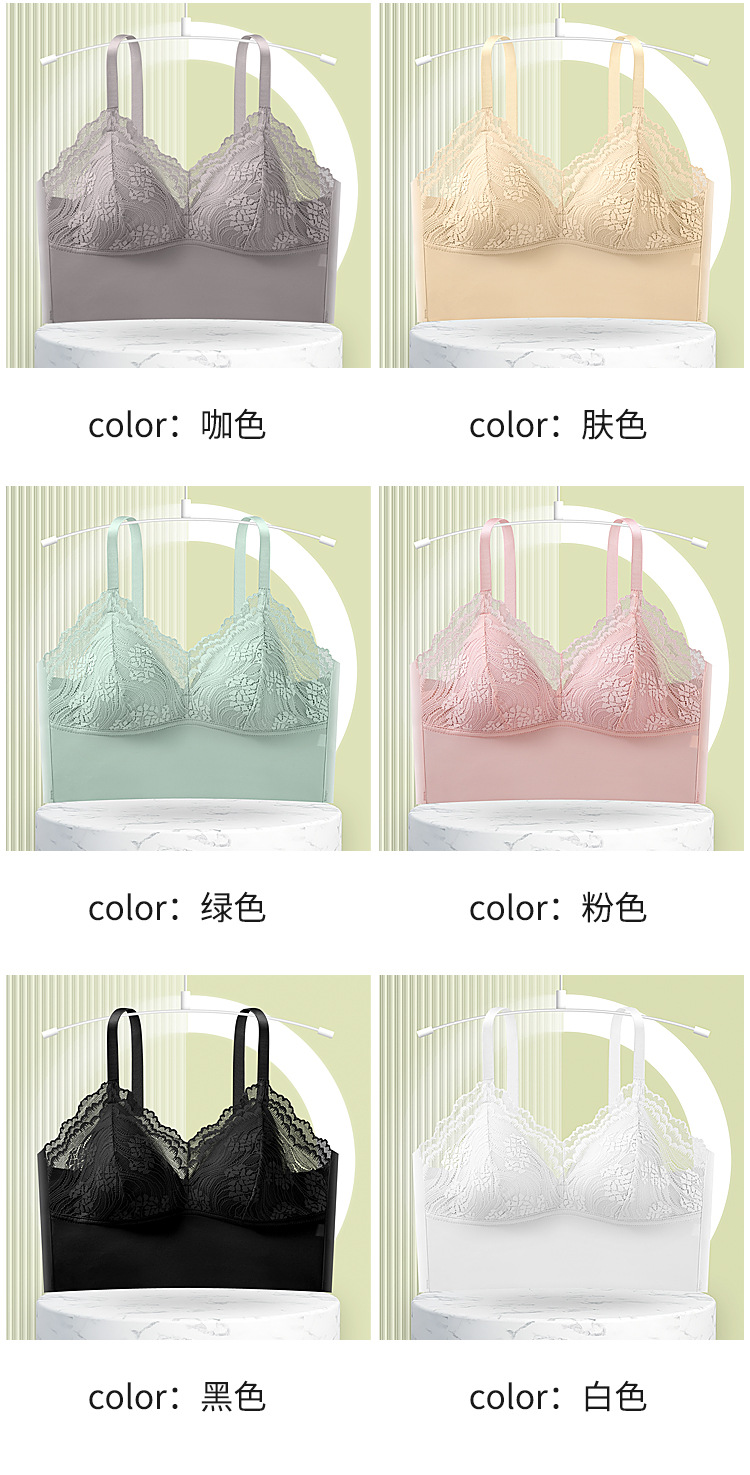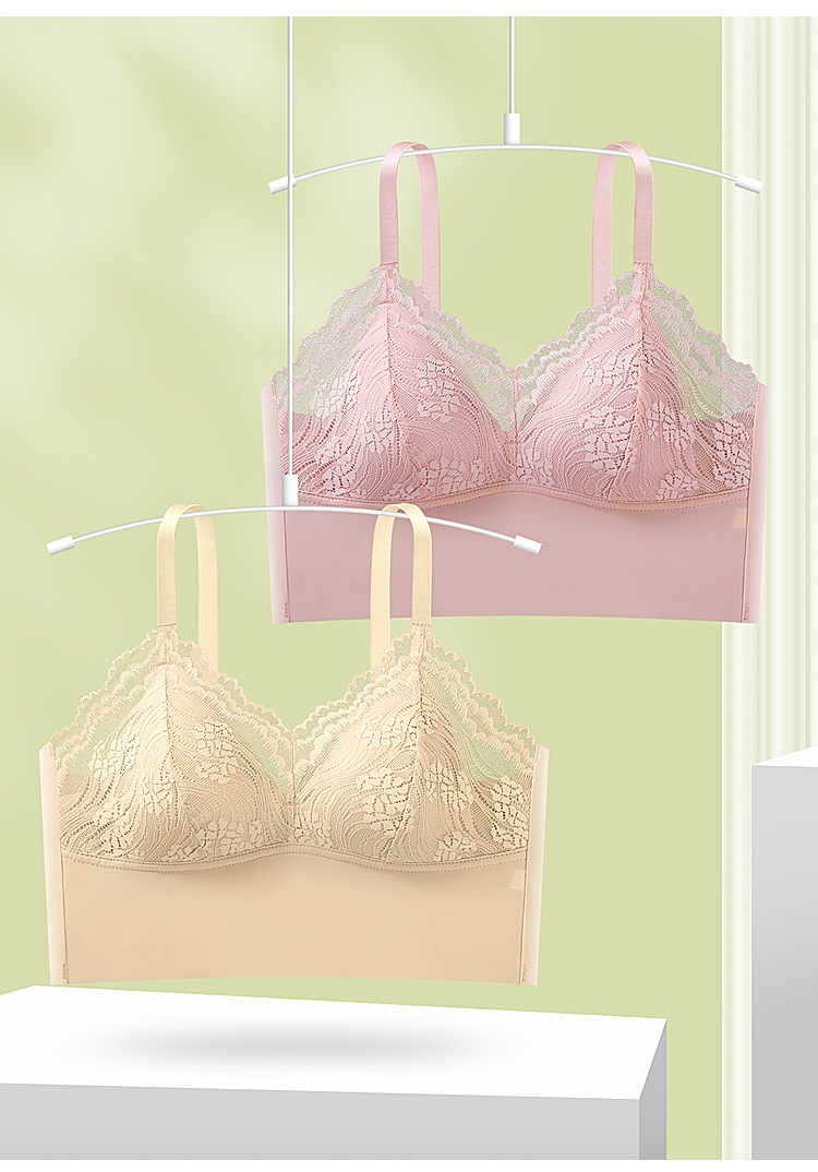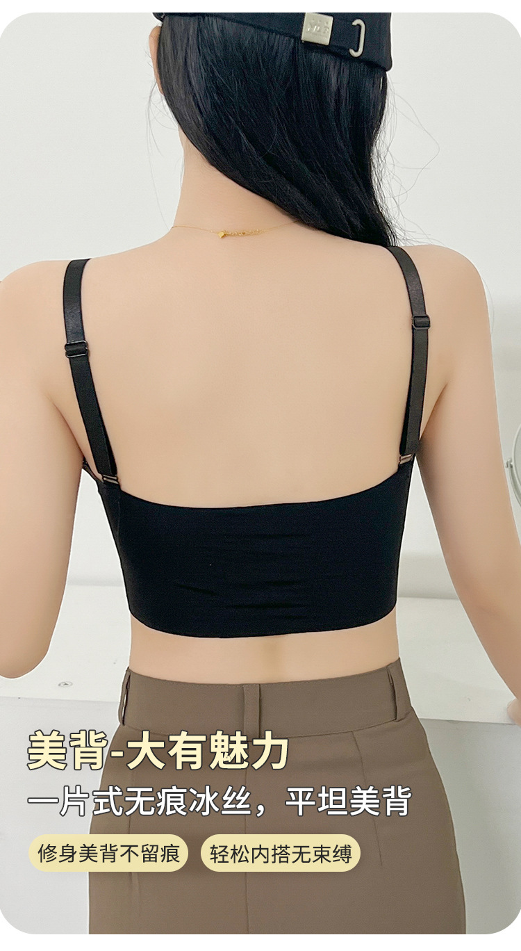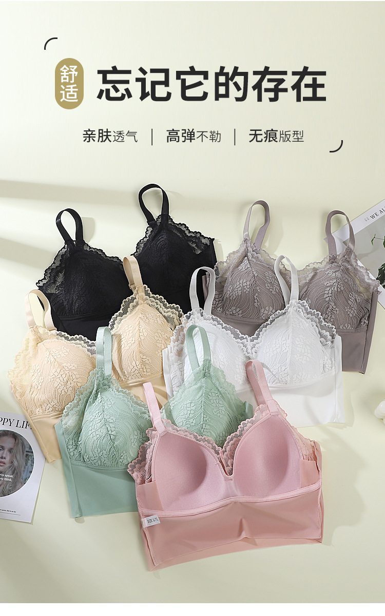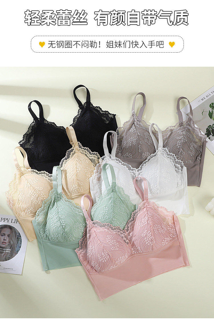 【法式蕾丝 性感美背内衣】蕾丝一体式固定杯 美背内衣女无钢圈 聚拢透气 舒适性感吊带裹胸抹胸