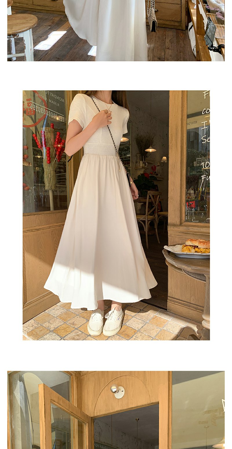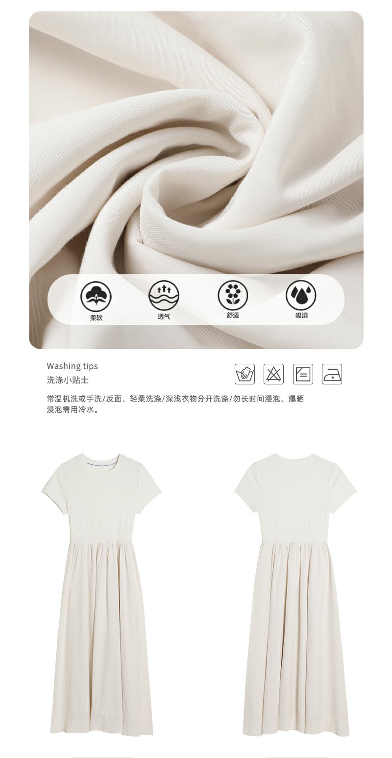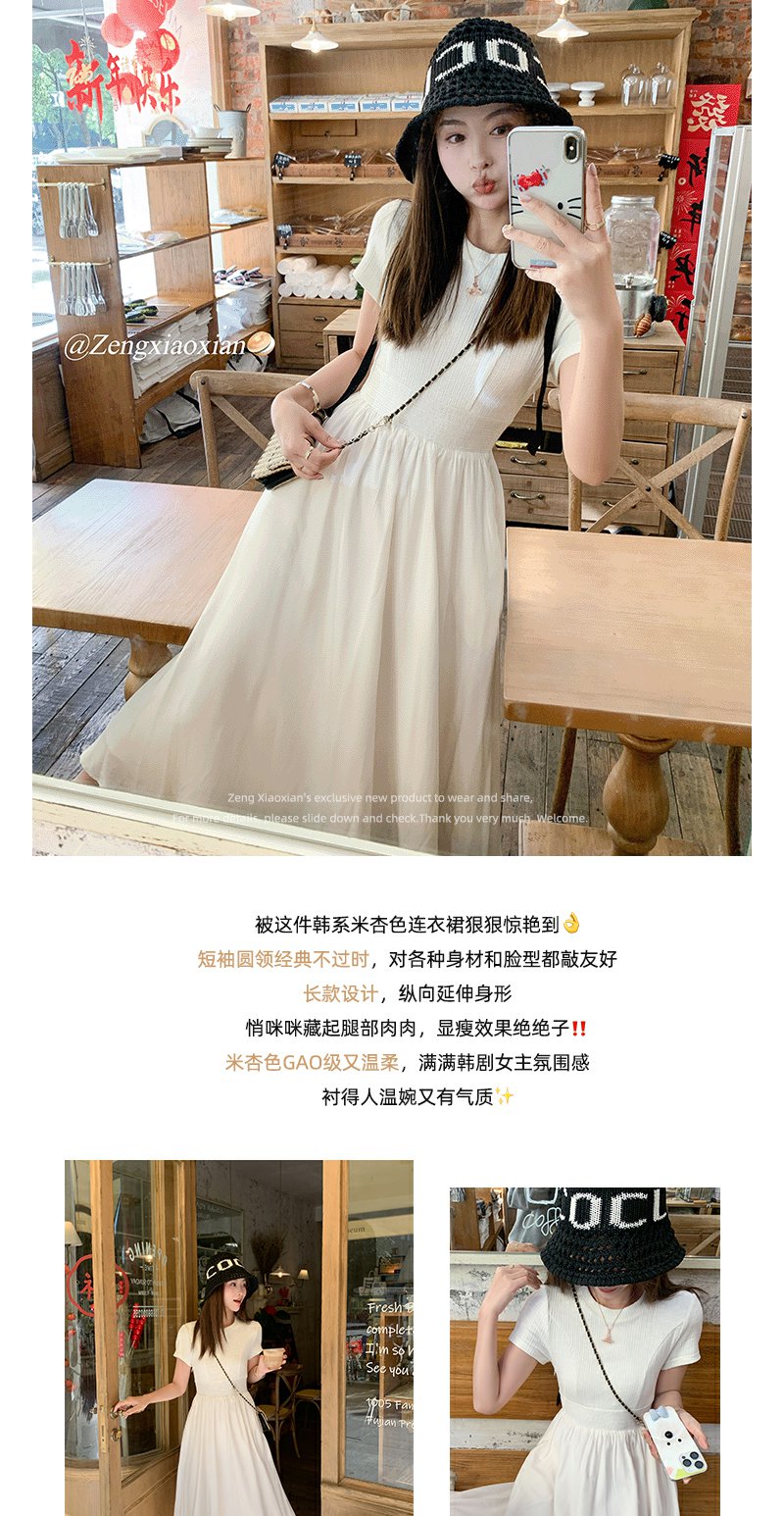 【189元任选2件】最后一波现货!韩系气质米杏色显瘦短袖连衣裙