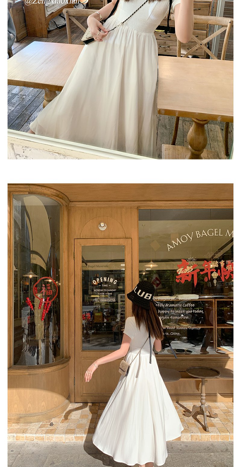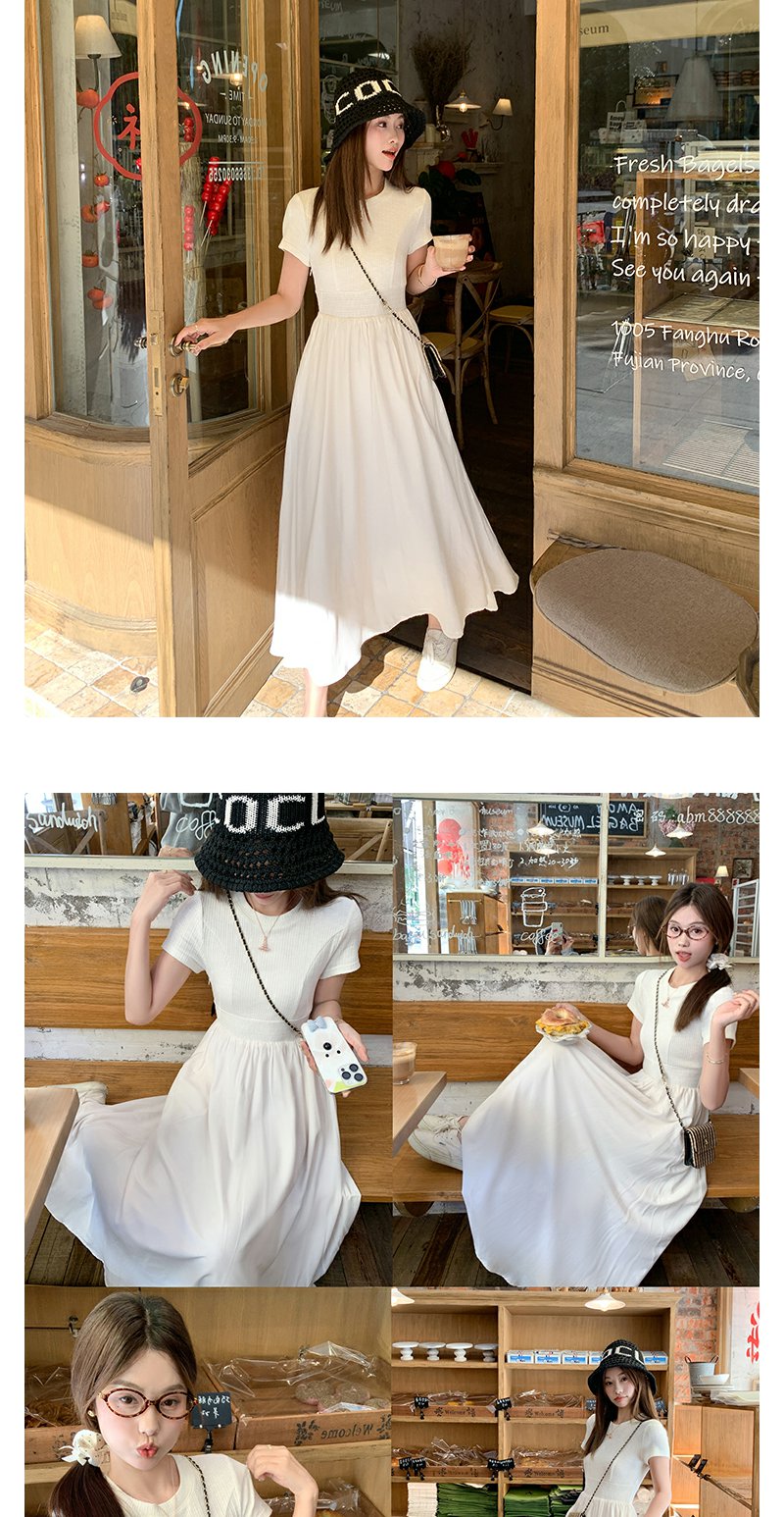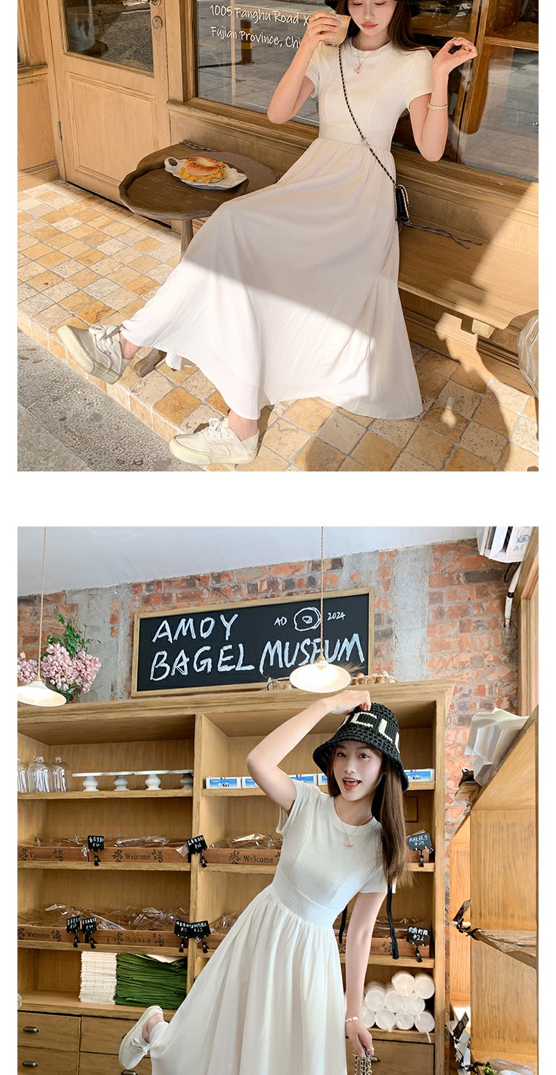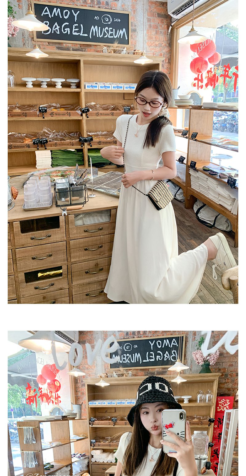 【189元任选2件】最后一波现货!韩系气质米杏色显瘦短袖连衣裙