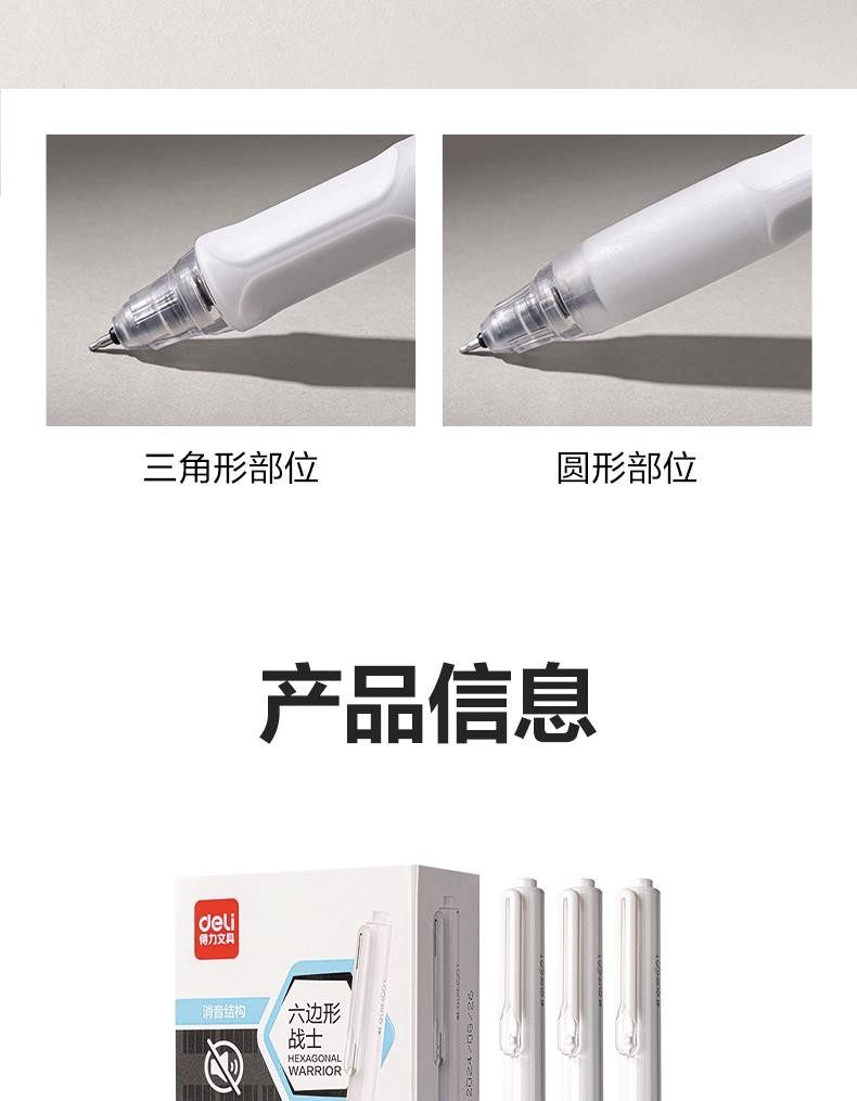 得力六边形战士【12支装 更划算】得力按动中性笔 学生用黑色速干六边形战士笔 考试碳素签字静音刷题笔