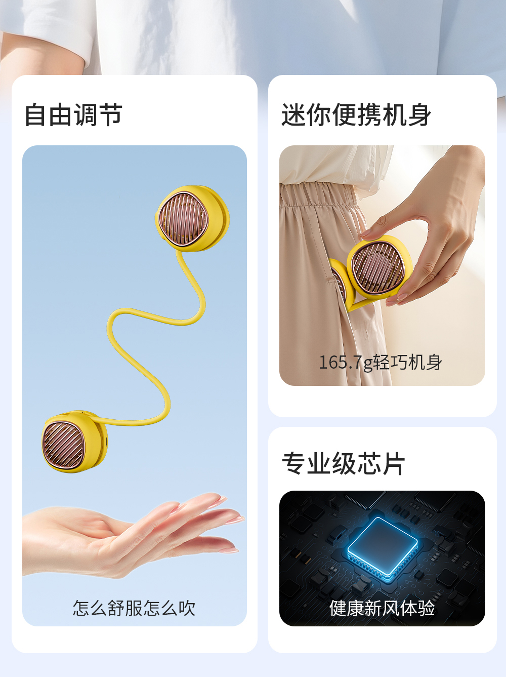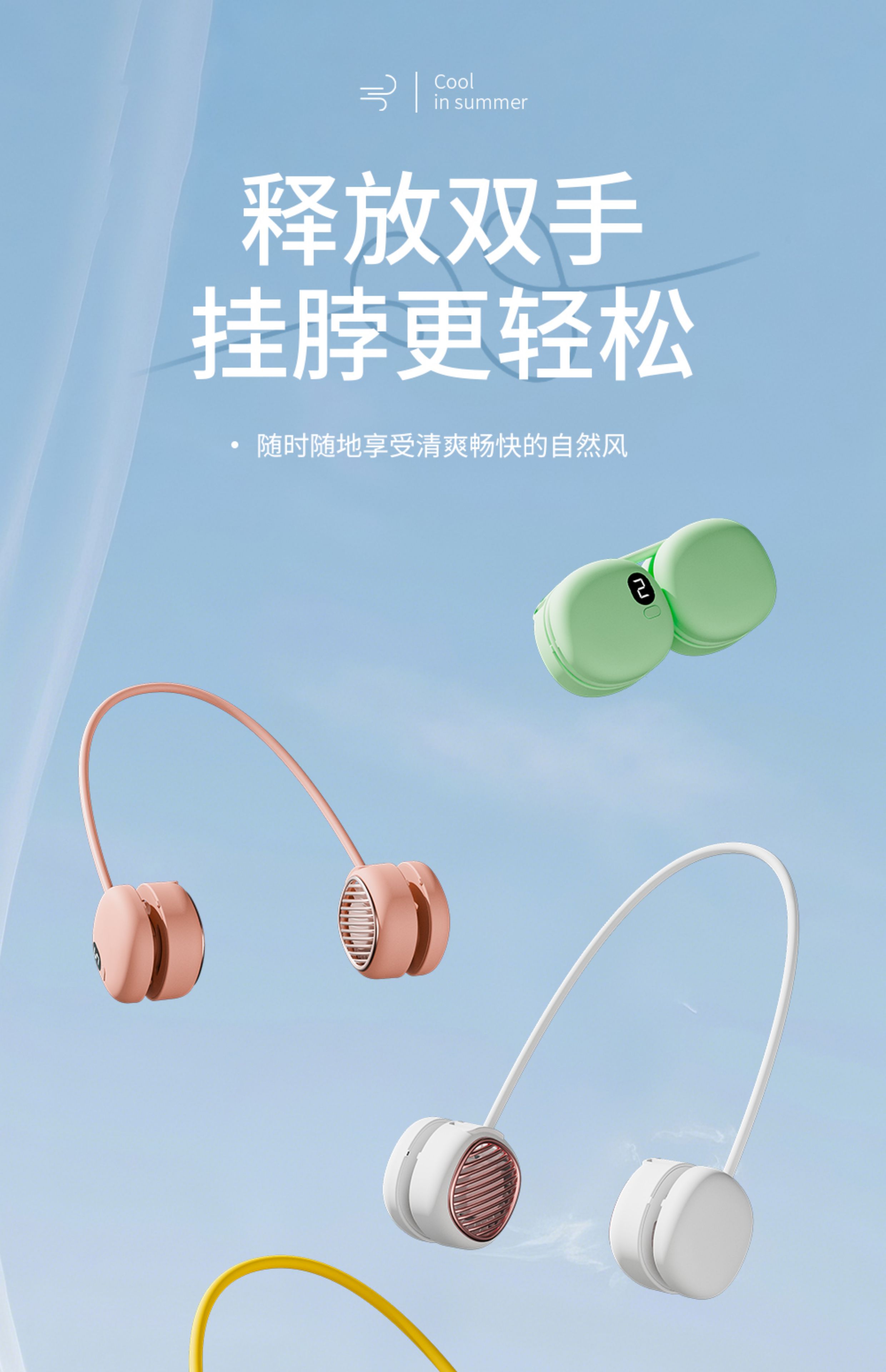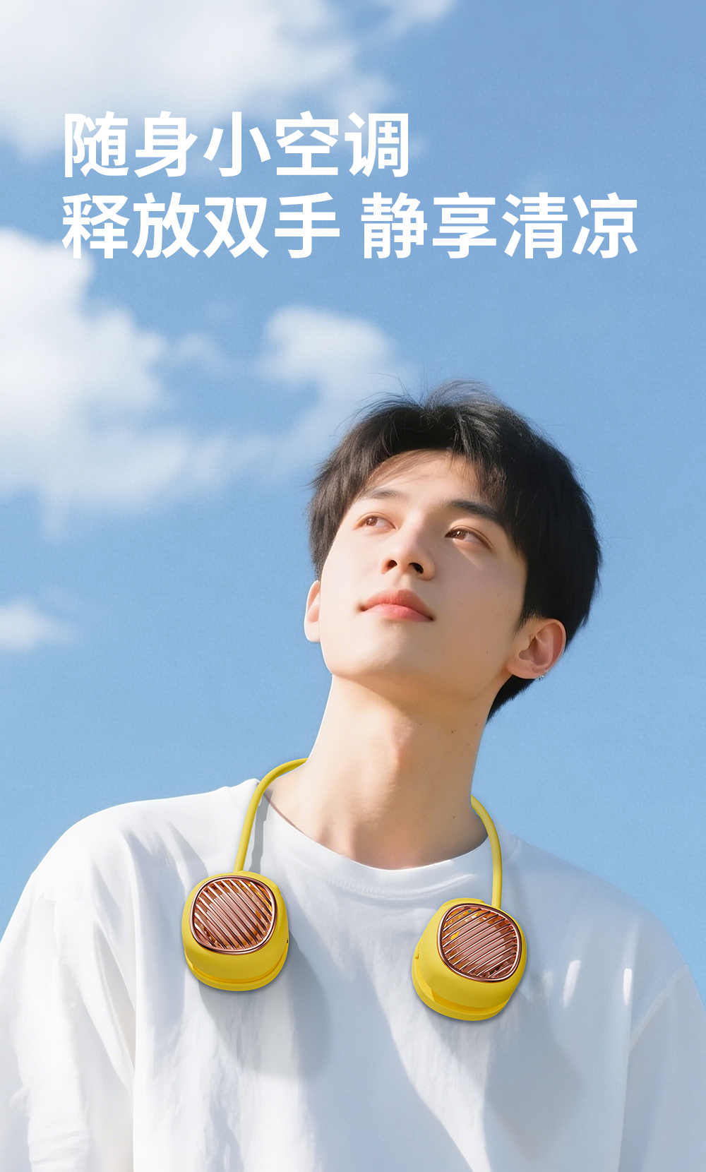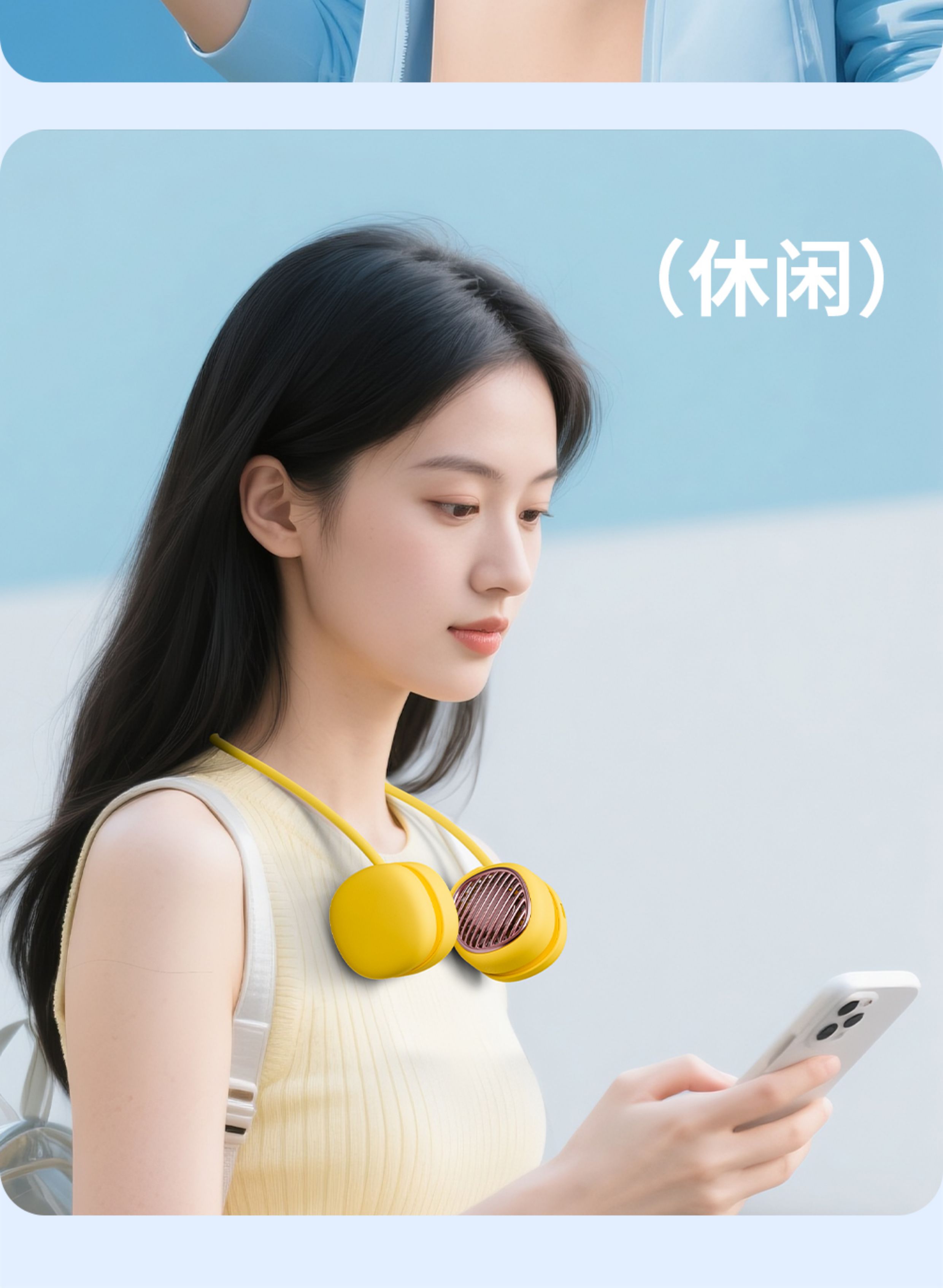 【解锁清凉新姿势】爆款随身便携式挂脖风扇 长续航懒人风扇 0负重挂脖风扇,720°旋转吹风+5档风力调节,随时随地冰爽享受❄️