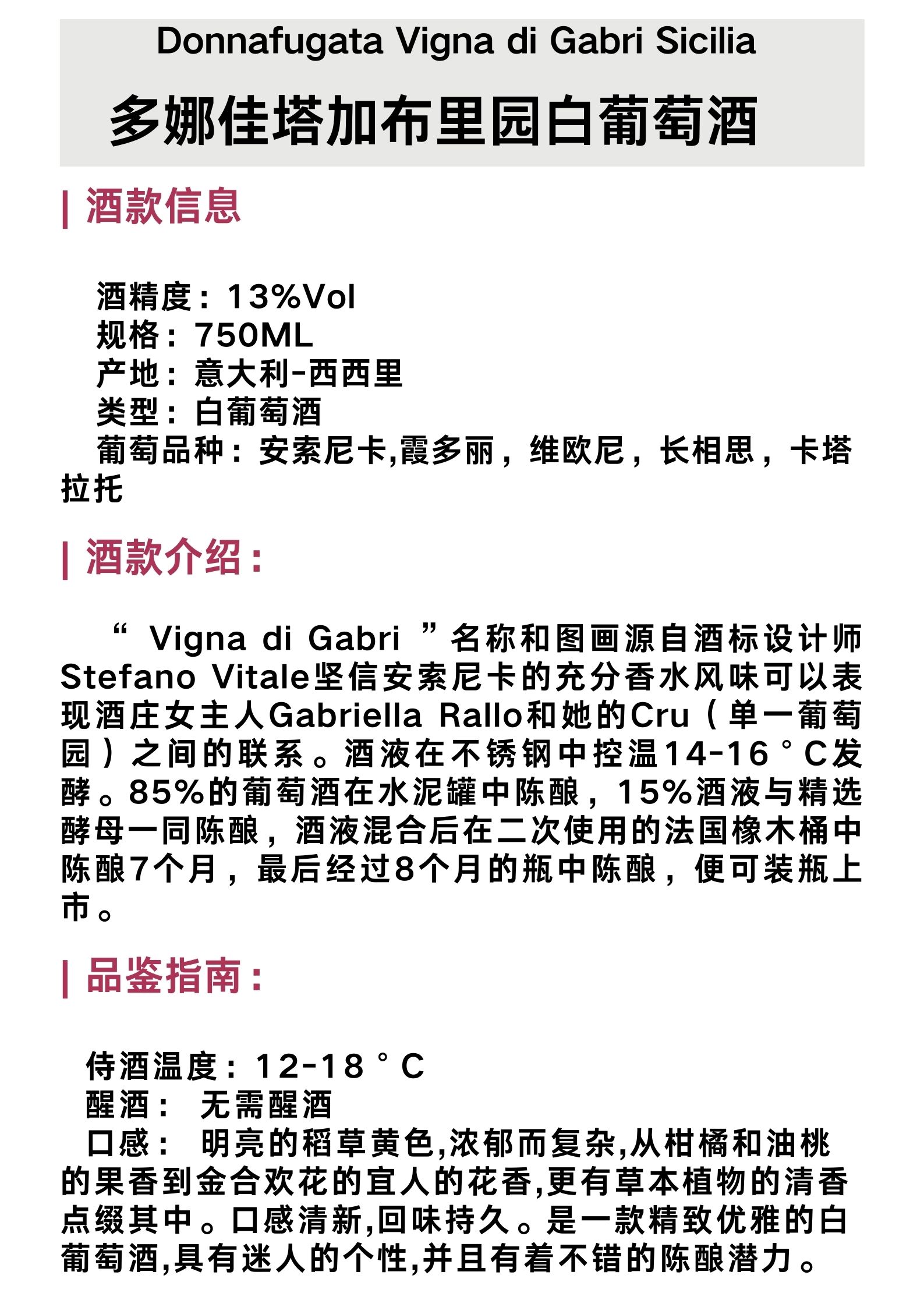 多娜佳塔加布里园白葡萄酒 Donnafugata Vigna di Gabri