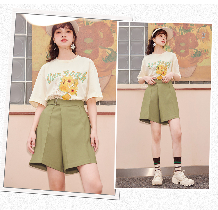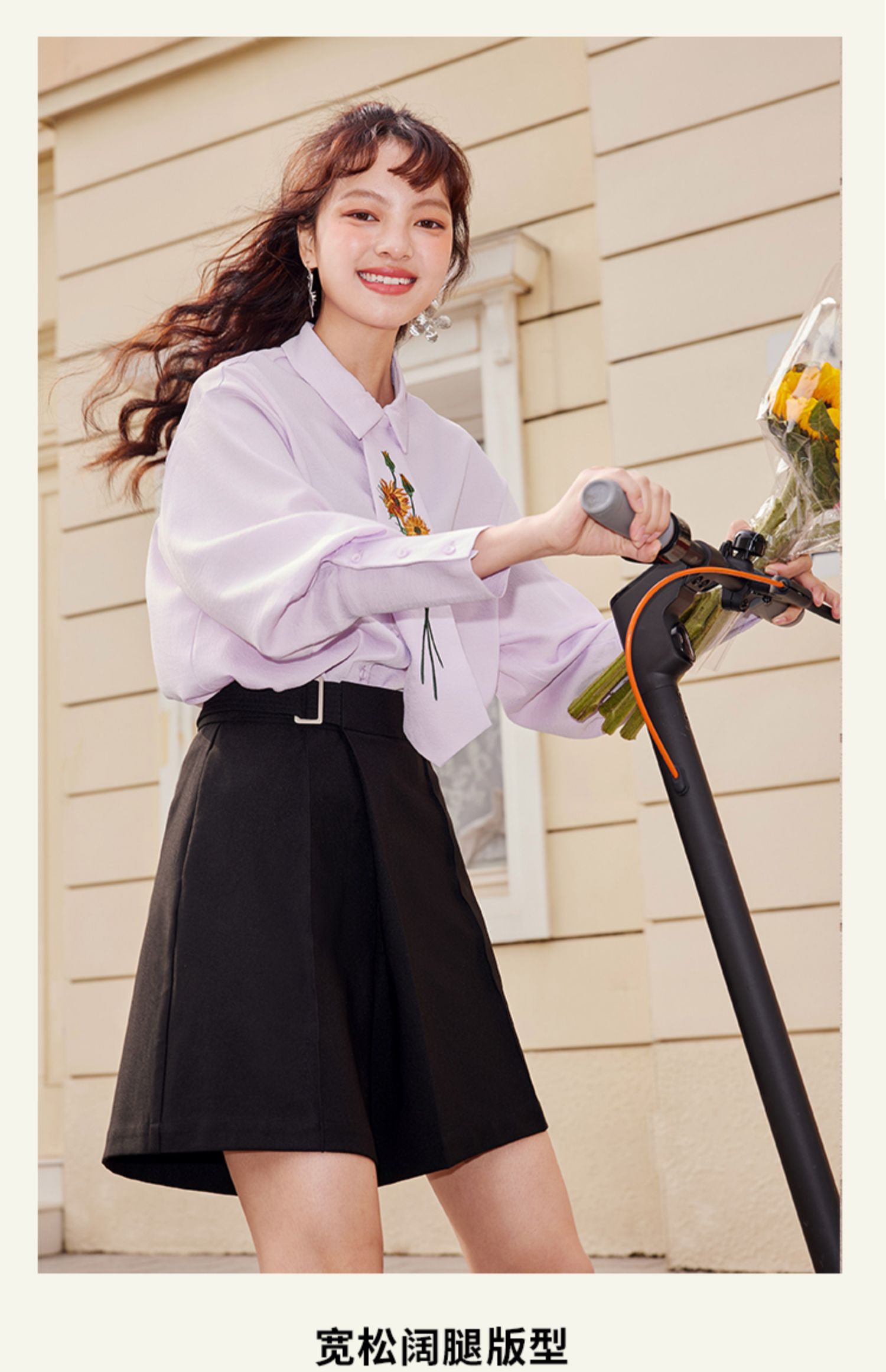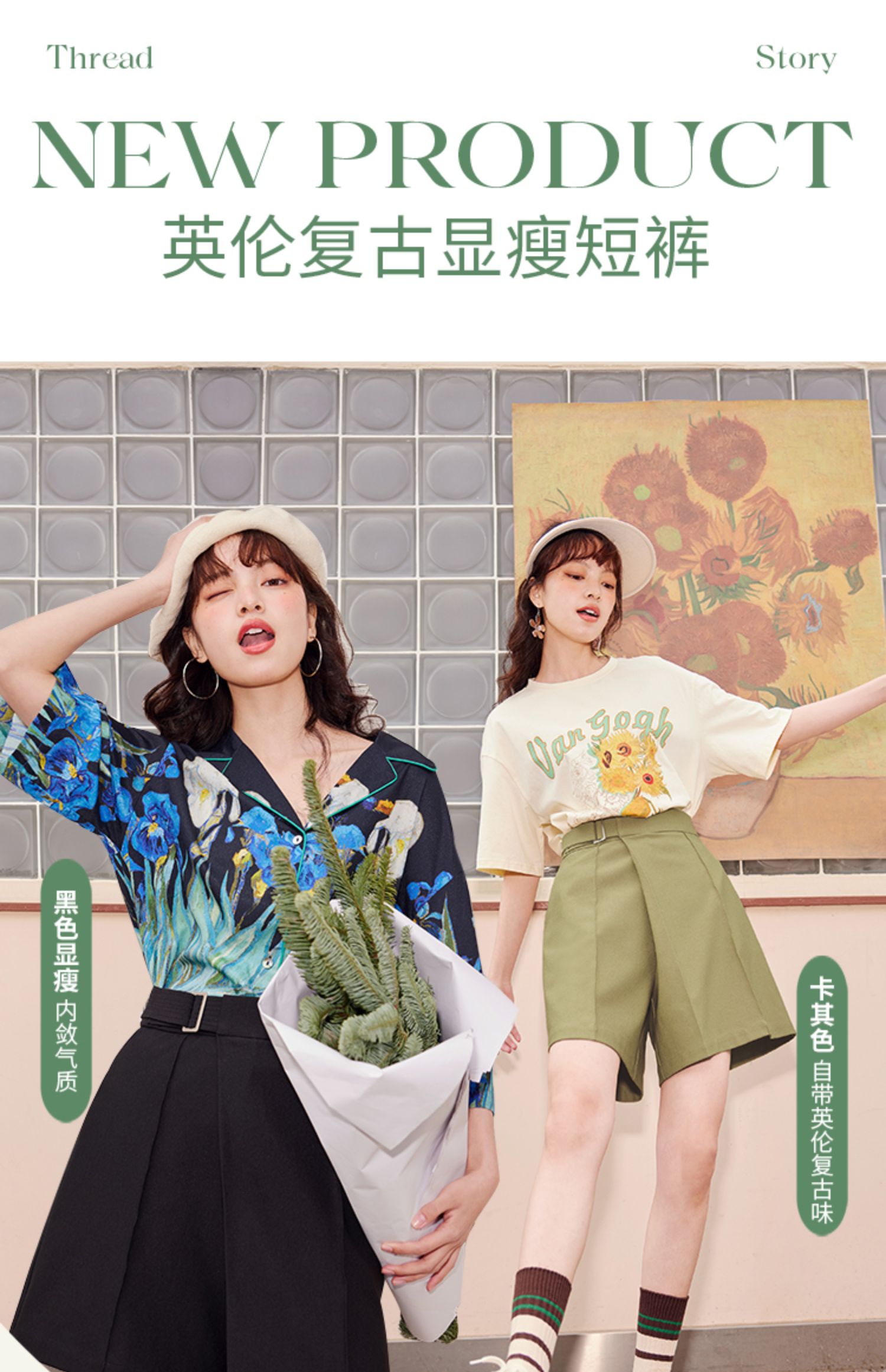 两三事与风私奔 春季新款简约系带雪纺阔腿高腰短裤女