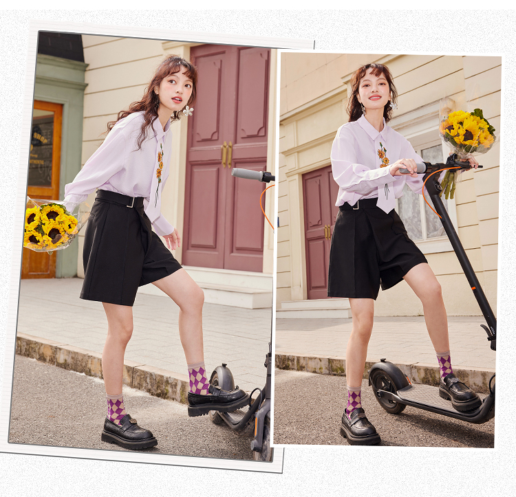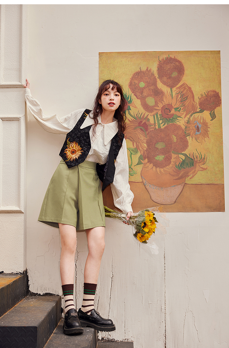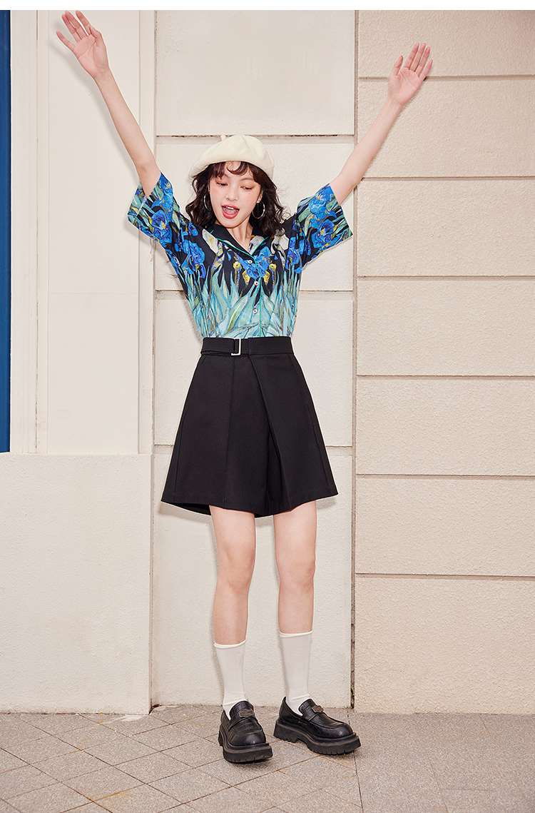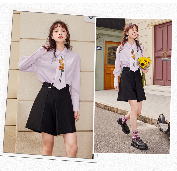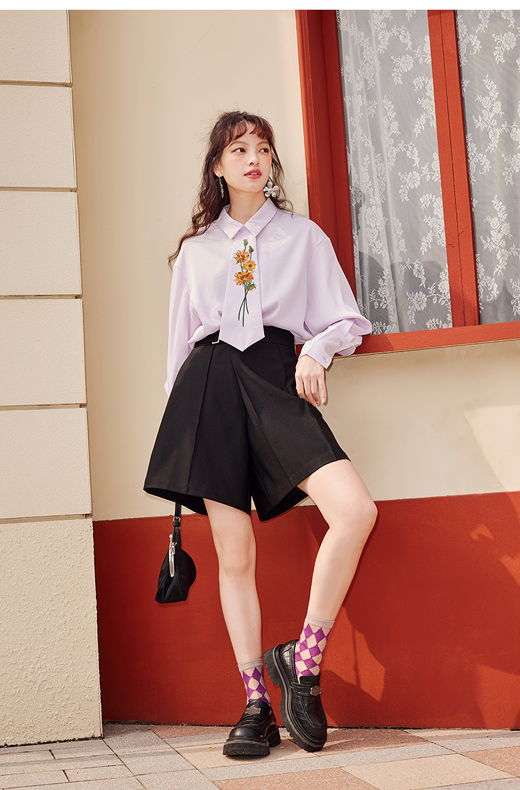 两三事与风私奔 春季新款简约系带雪纺阔腿高腰短裤女
