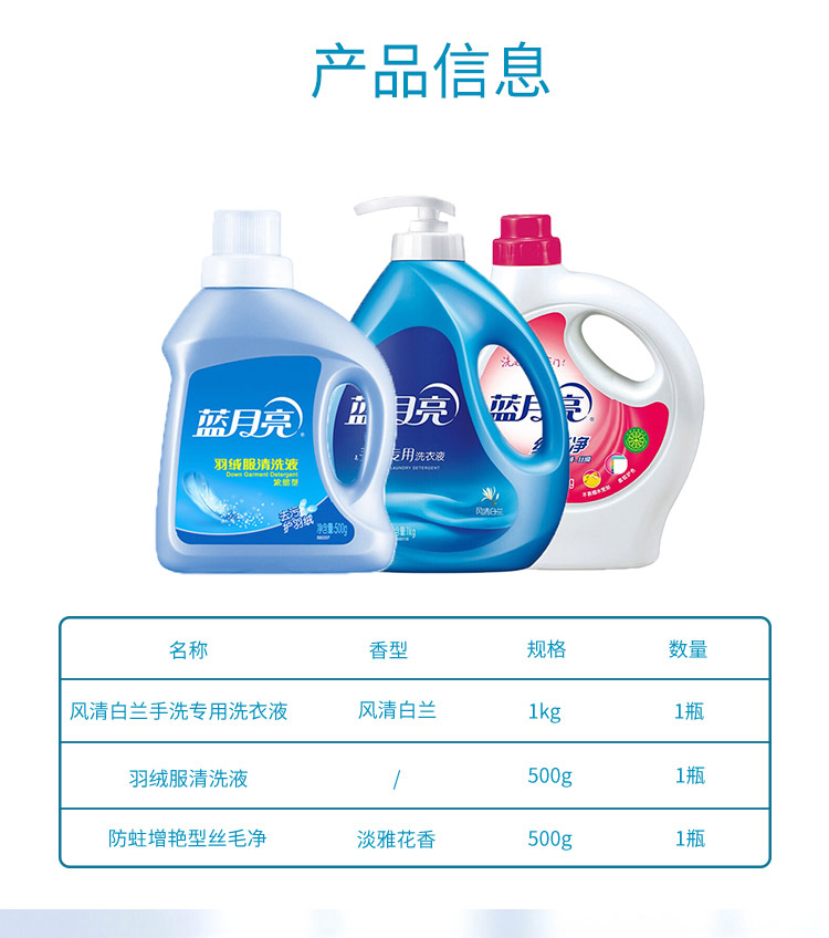 羽绒服清洗液500g+防蛀增艳型丝毛净500g+风清白兰手洗专用洗衣液1kg