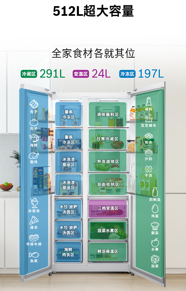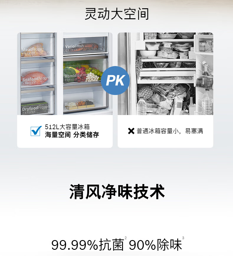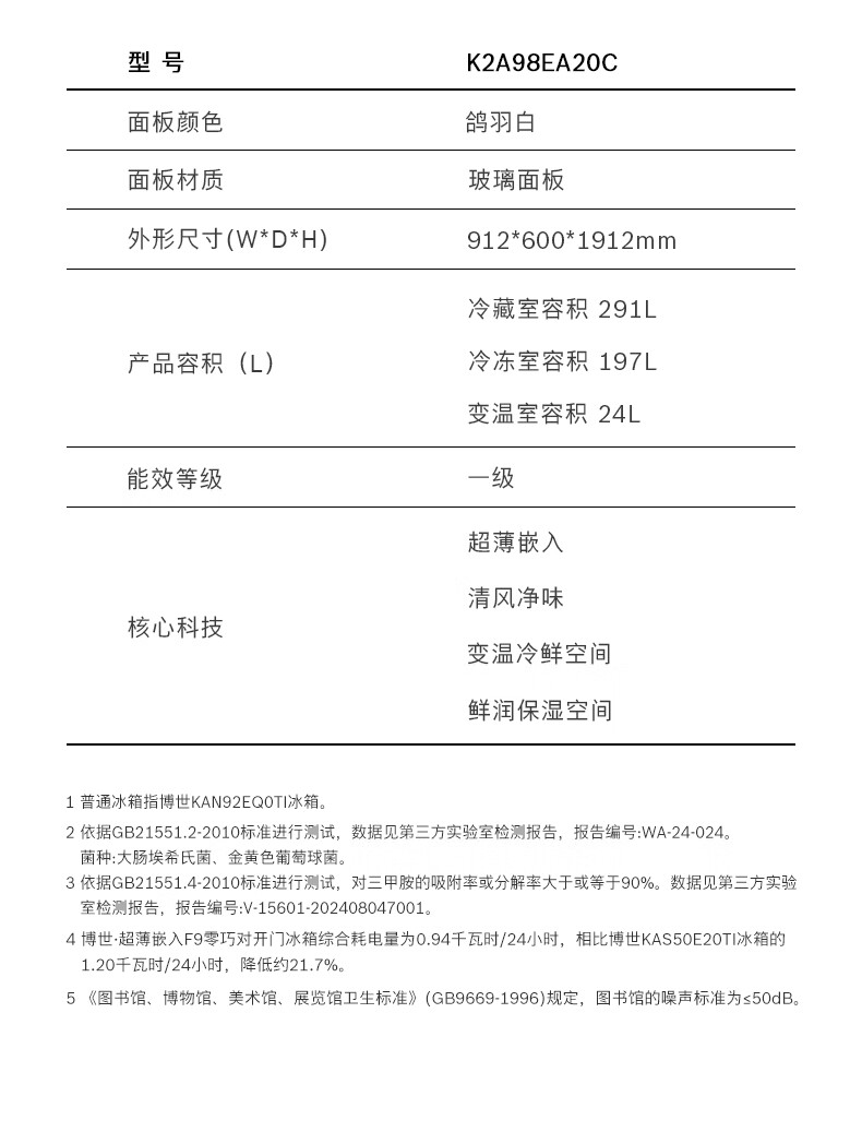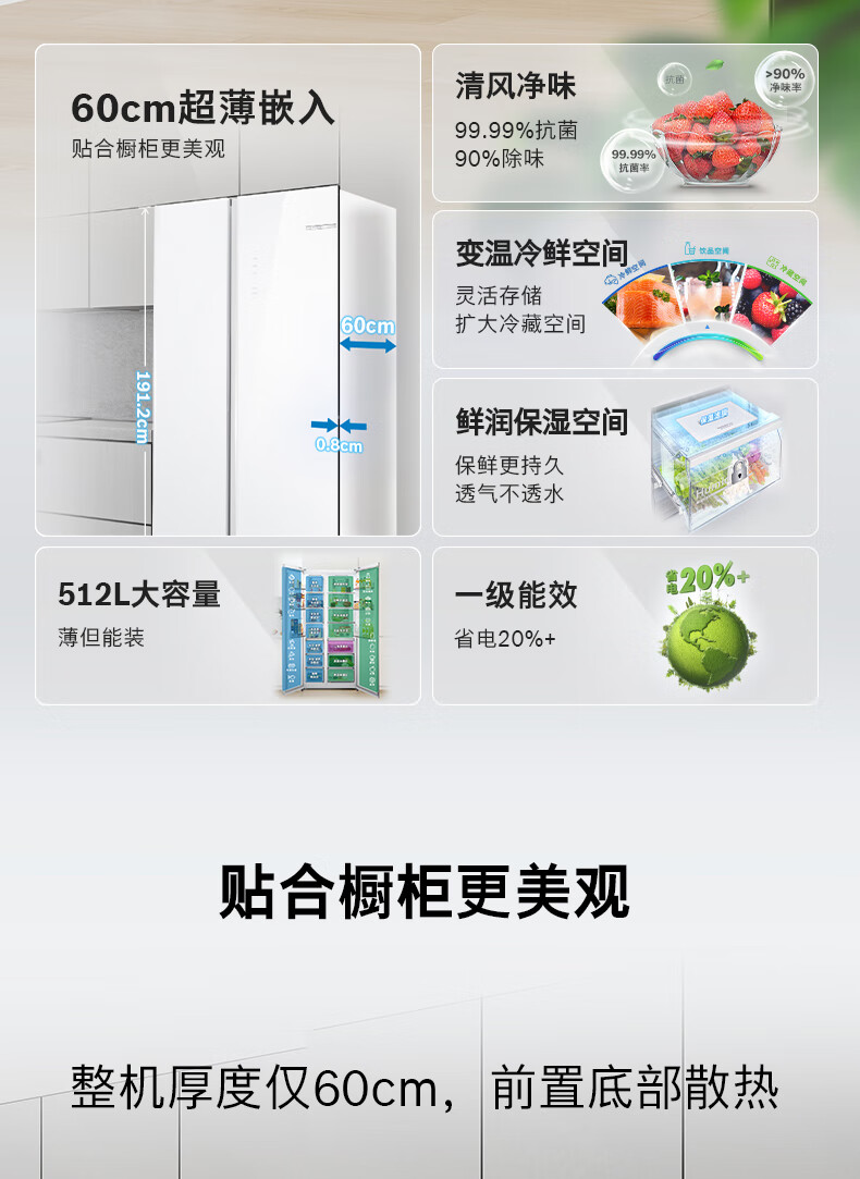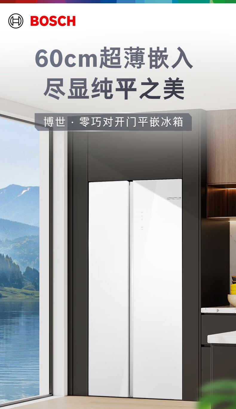 博世(BOSCH)【零巧系列】超薄嵌F9家用对开门电冰箱 512L超大容量 玻璃面板60cm超薄机身 清风净味 三档变温 K2A98EA20C白色