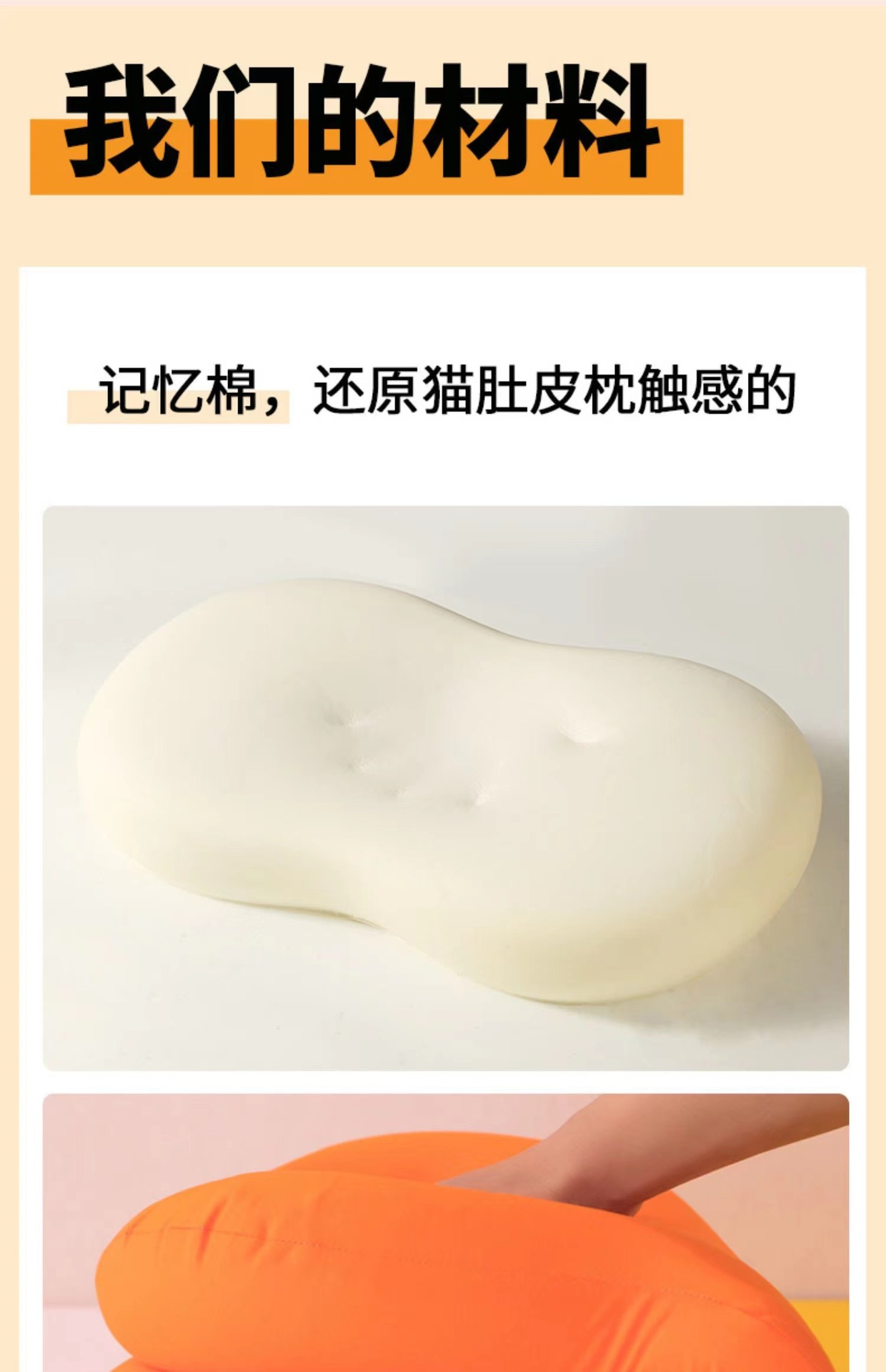 软糯猫肚手感 猫肚枕记忆棉枕芯护颈枕猫肚皮枕头深睡枕夏季枕头儿童枕头