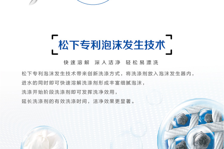 松下8公斤智能健康洗涤 高效洗净 泡沫净搭载 ECONAVI智能核心滚筒洗衣机XQG80-ESV81