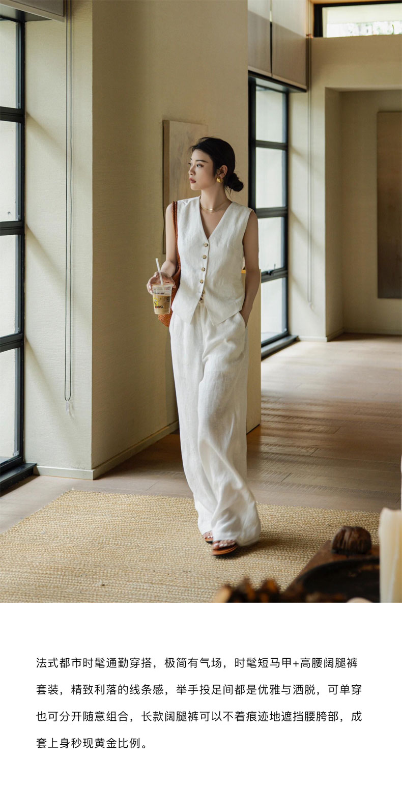 老钱风亚麻三件套,法式穿搭极简有气场,精致利落线条感【G】