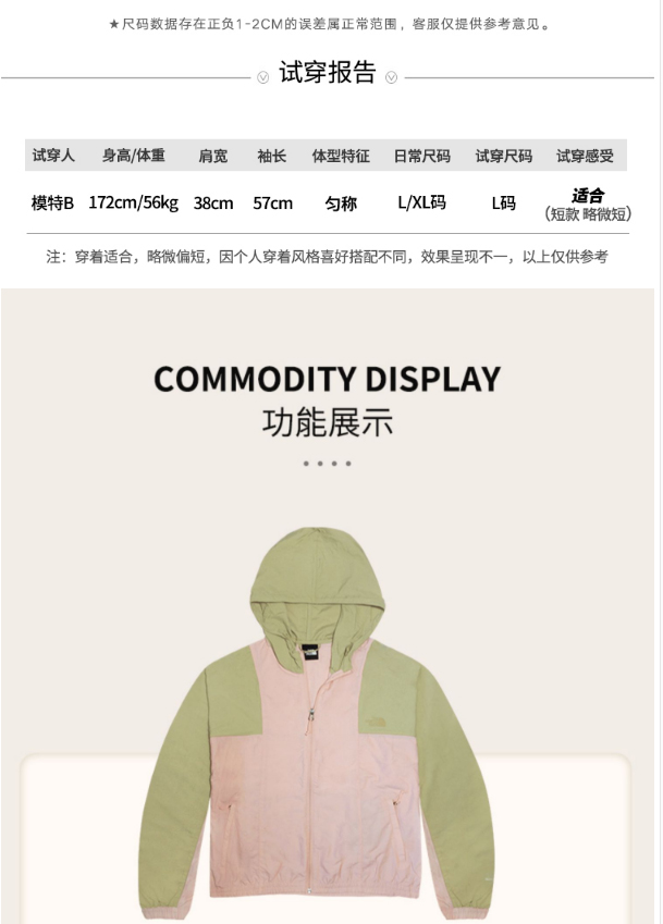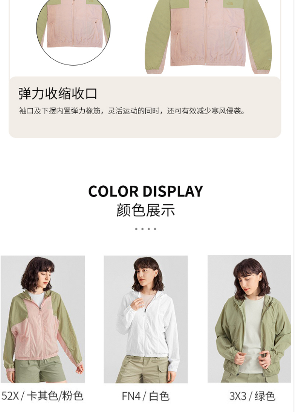 北面皮肤衣女2022春夏户外休闲长袖防晒夹克外套NF0A5JXIFN41