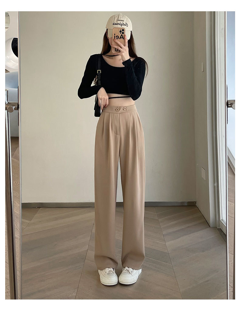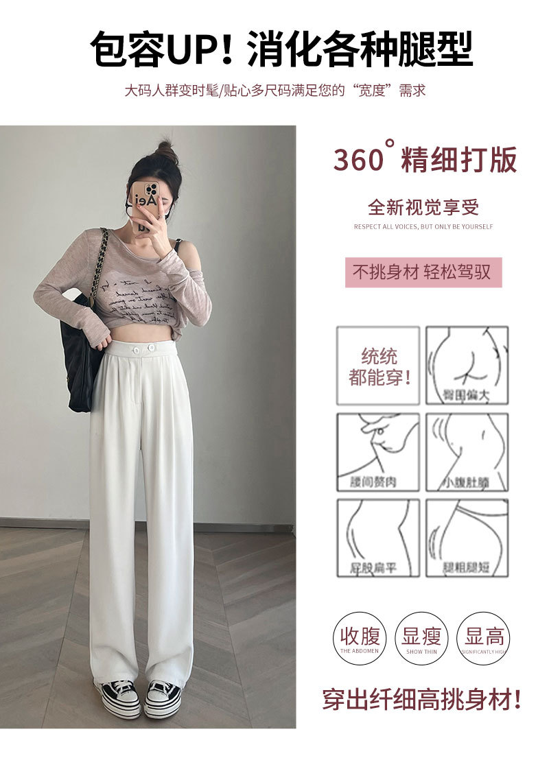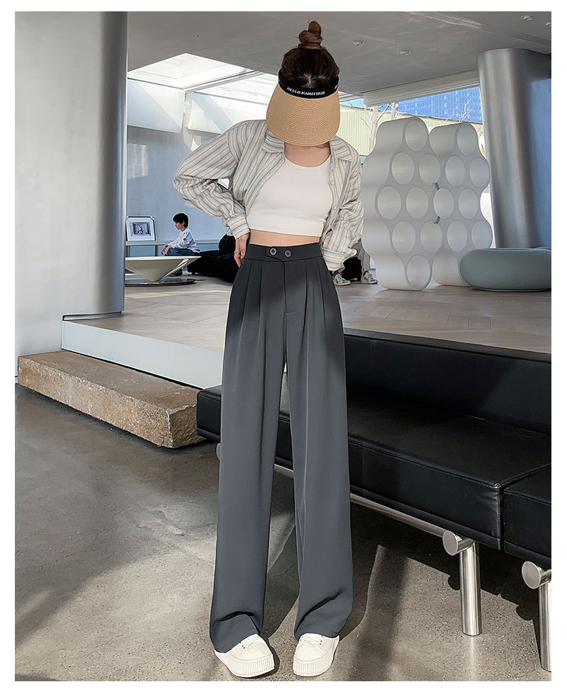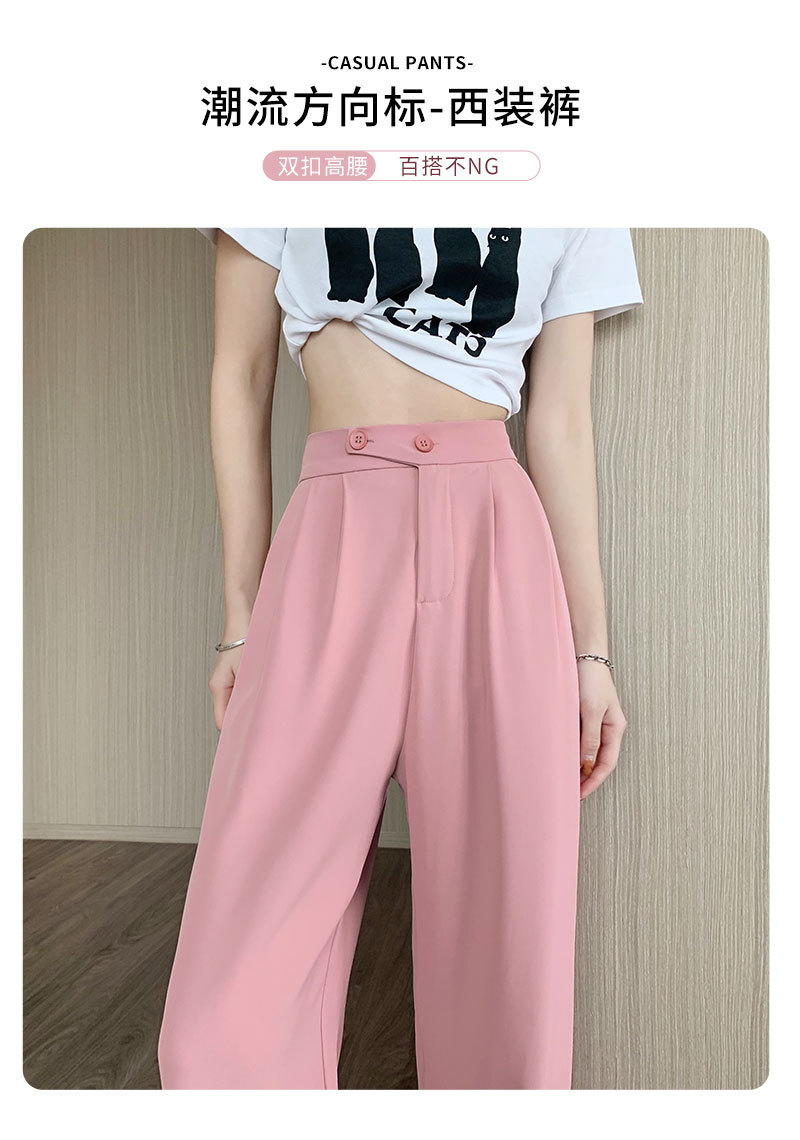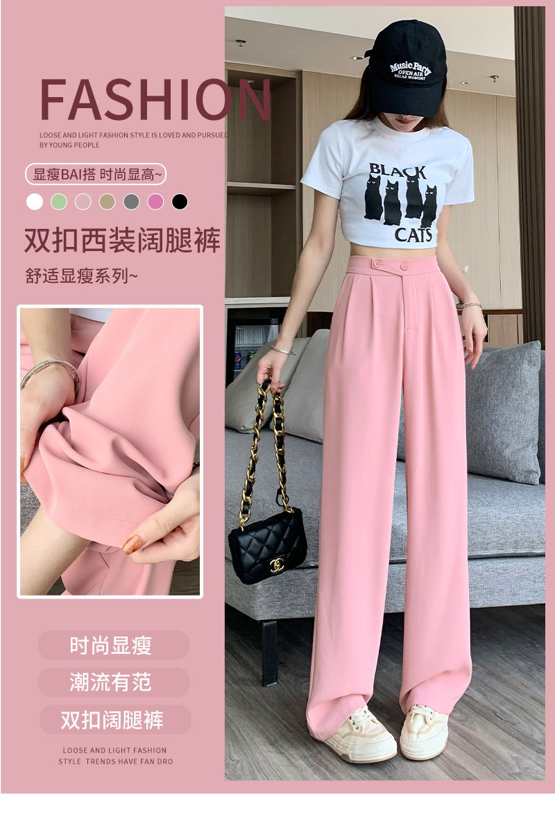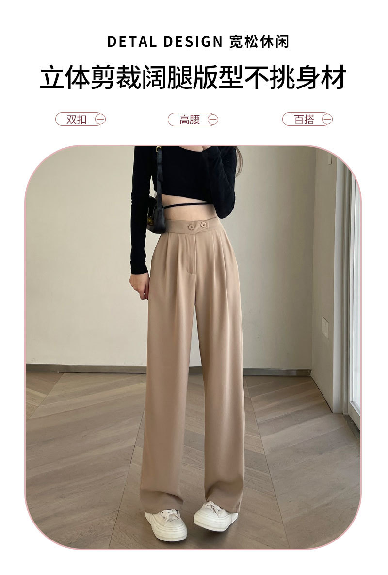 时尚女性必备,春夏新款双扣高腰垂感休闲西装裤,配以窄版阔腿设计,展现迷人曲线。轻盈薄款,自带气质,拖地薄款直筒裤子女,舒适透气,非常适合各种场合穿着!
