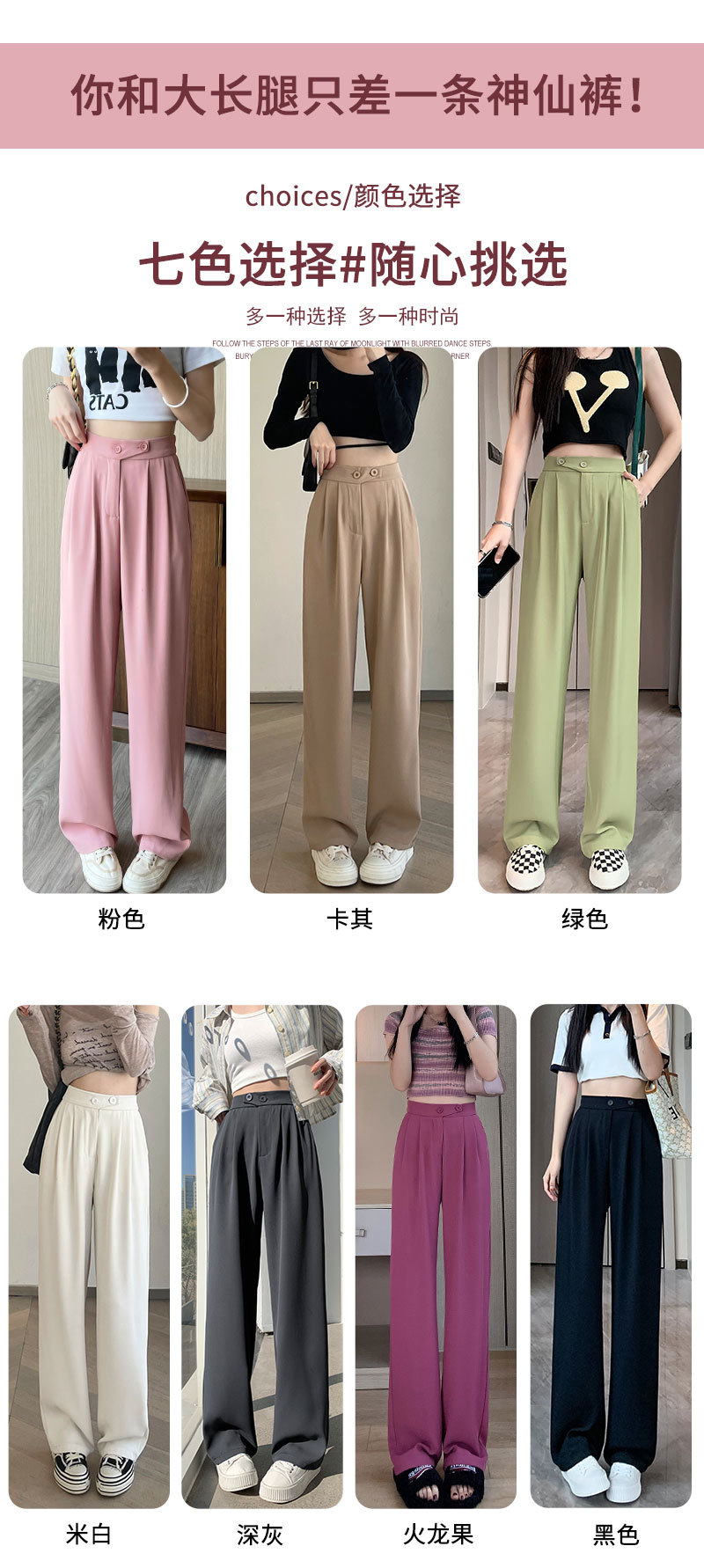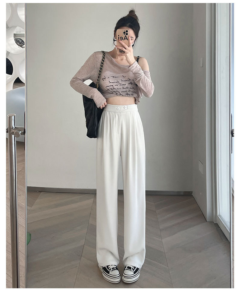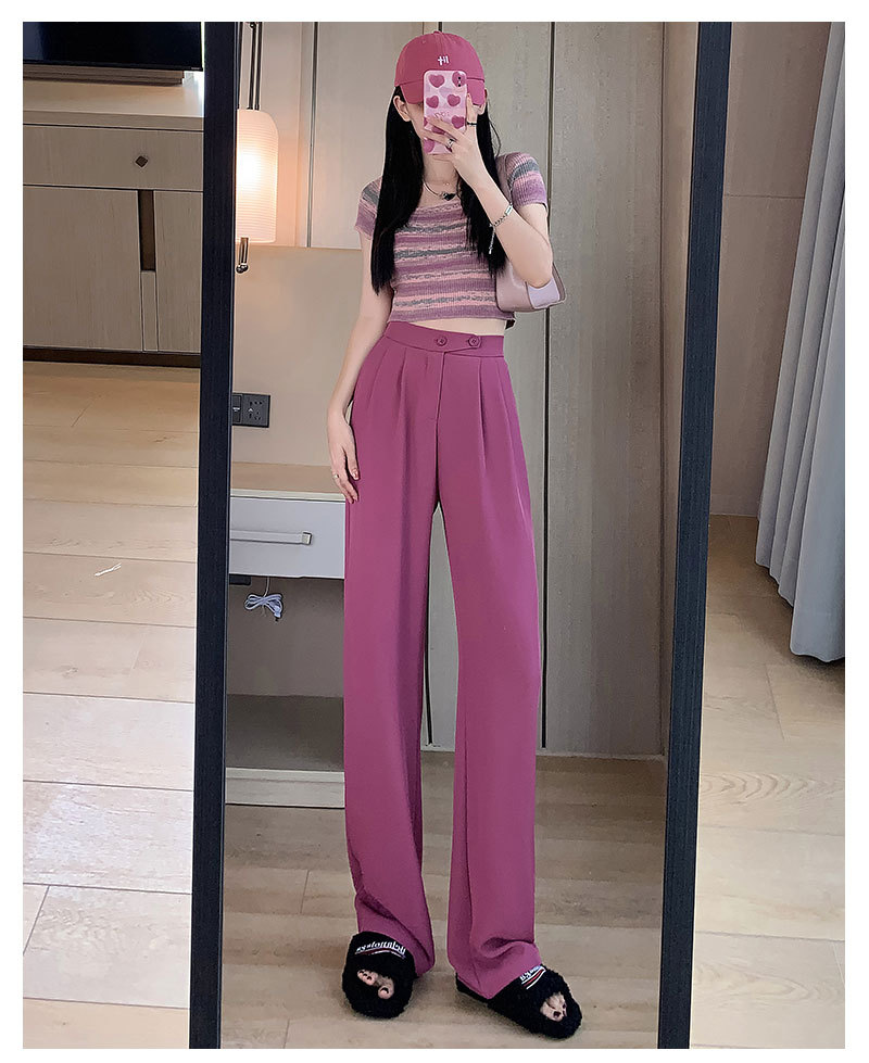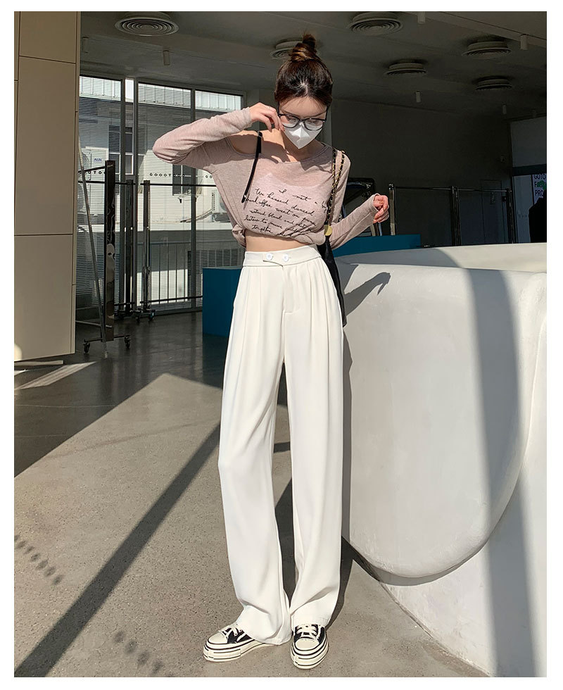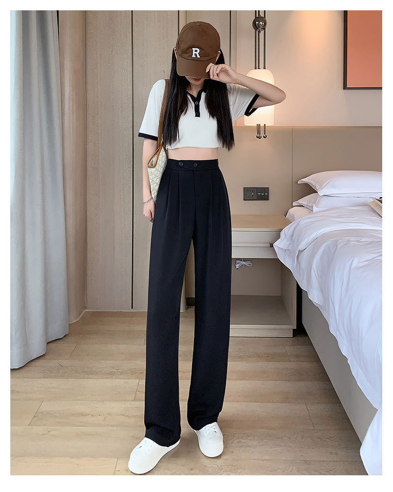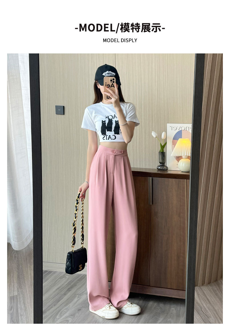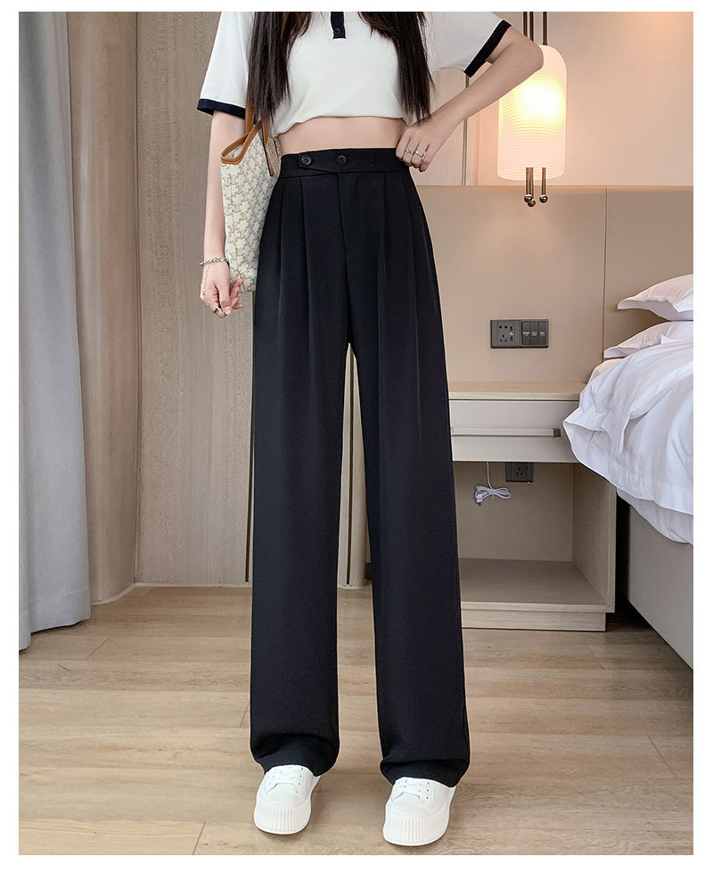 时尚女性必备,春夏新款双扣高腰垂感休闲西装裤,配以窄版阔腿设计,展现迷人曲线。轻盈薄款,自带气质,拖地薄款直筒裤子女,舒适透气,非常适合各种场合穿着!
