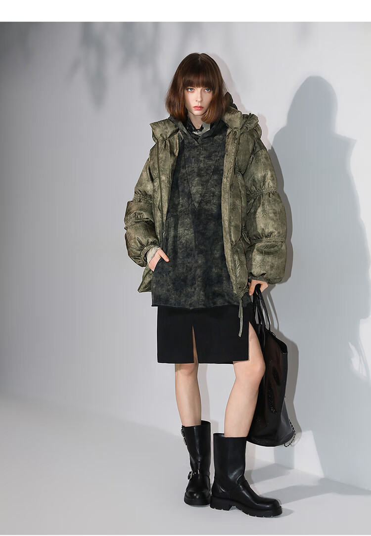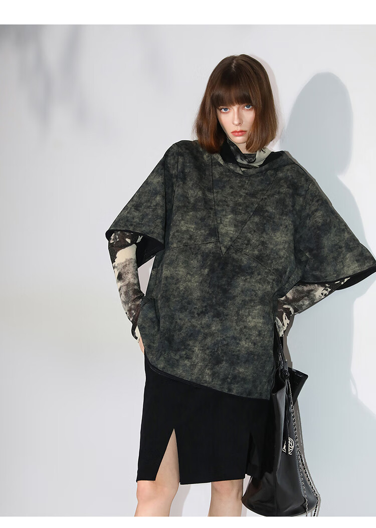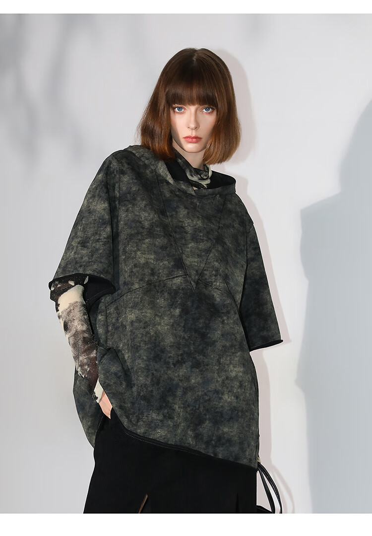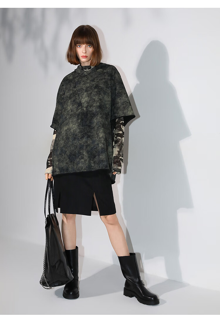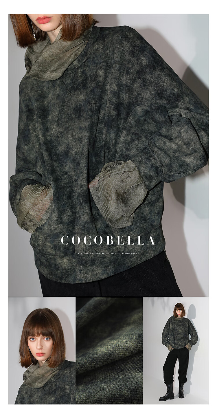 【限时秒杀】COCOBELLA晕染炒色解构拼接毛边帽衫女秋宽松休闲卫衣SE3010