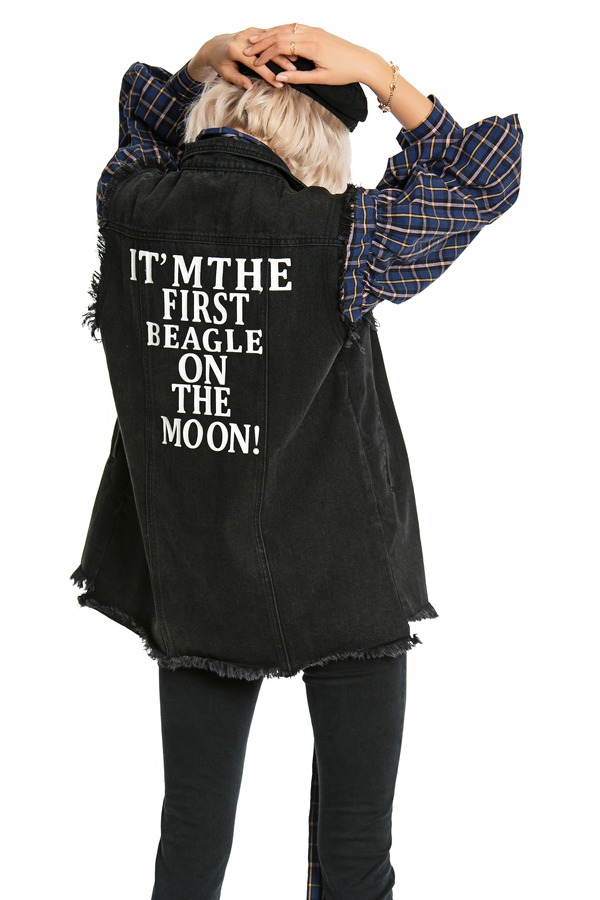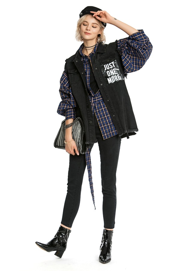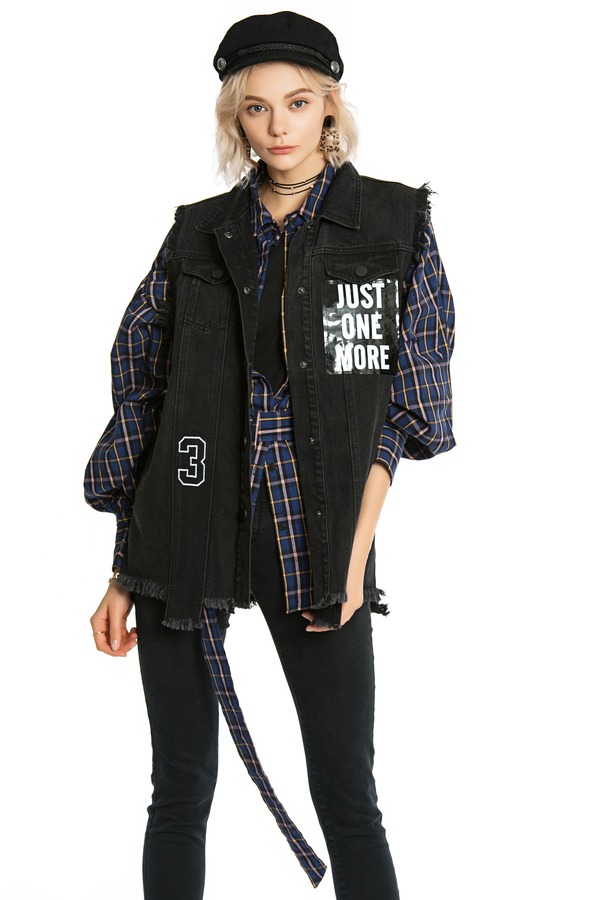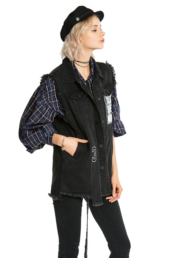 MODERN SHOW 磨边logo牛仔背心 3825