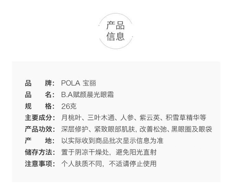 Pola宝丽【本土版】B.A赋颜晨光眼霜26g