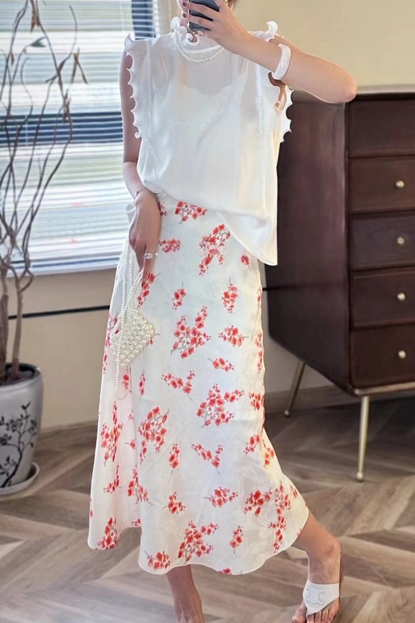 Le Malene 米色暗纹碎花高腰半裙 20680