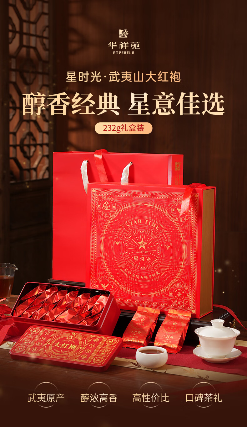 华祥苑·乌龙茶 武夷山岩茶大红袍一级232g中足火礼盒茶叶 礼品送礼