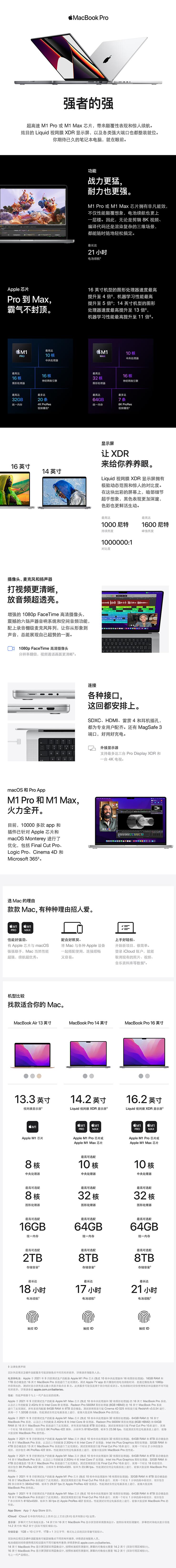 Apple MacBook Pro 16英寸M1 Pro芯片(10核中央处理器 16核图形处理器) 16G+512G 笔记本电脑