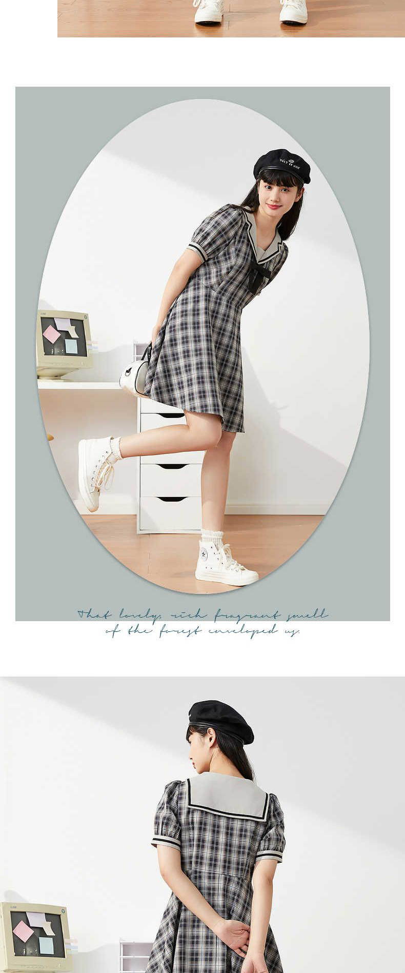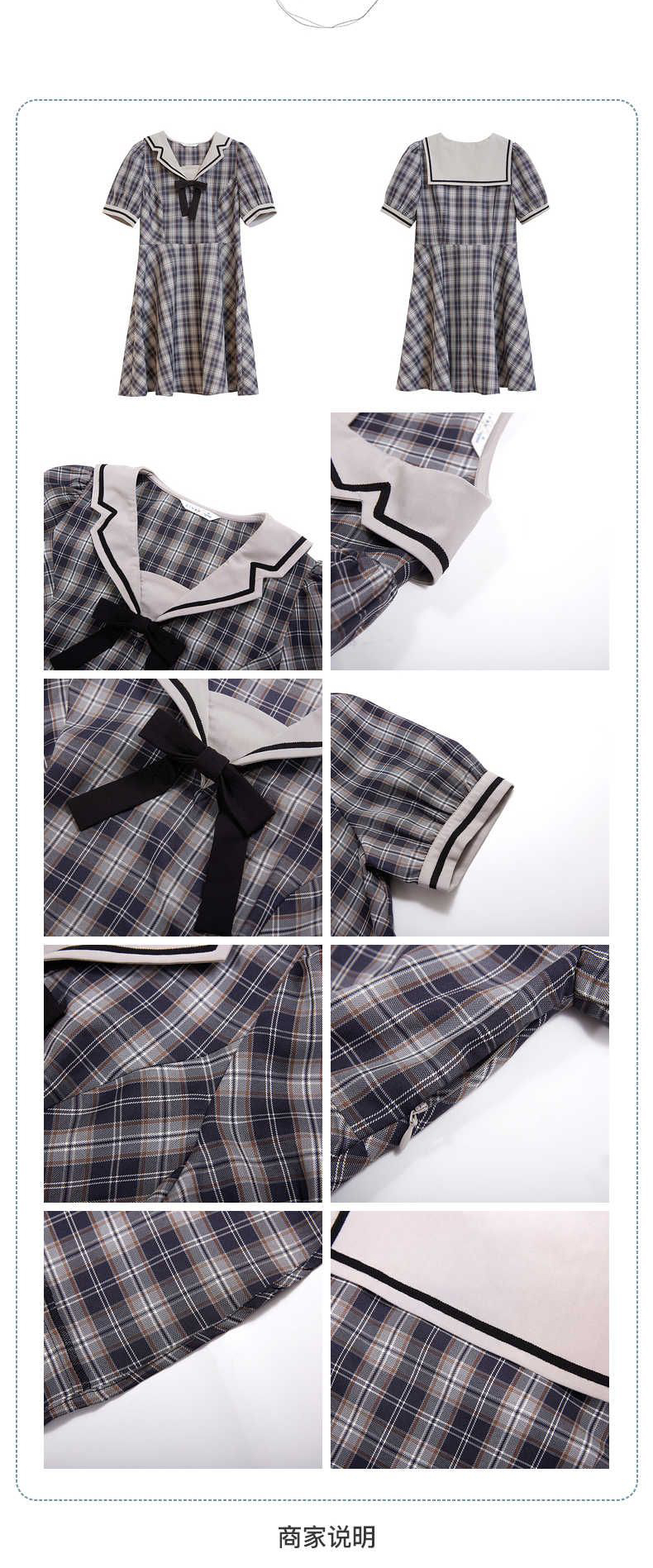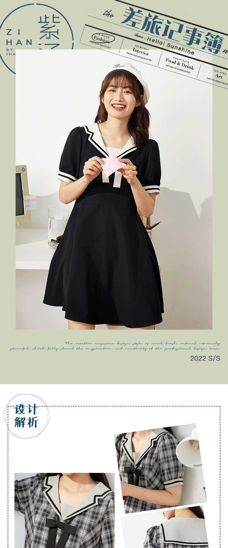 ZIHAN紫涵格纹收腰连衣裙女2022夏季新撞色织带甜美约会裙子蝴蝶结少女04AS202