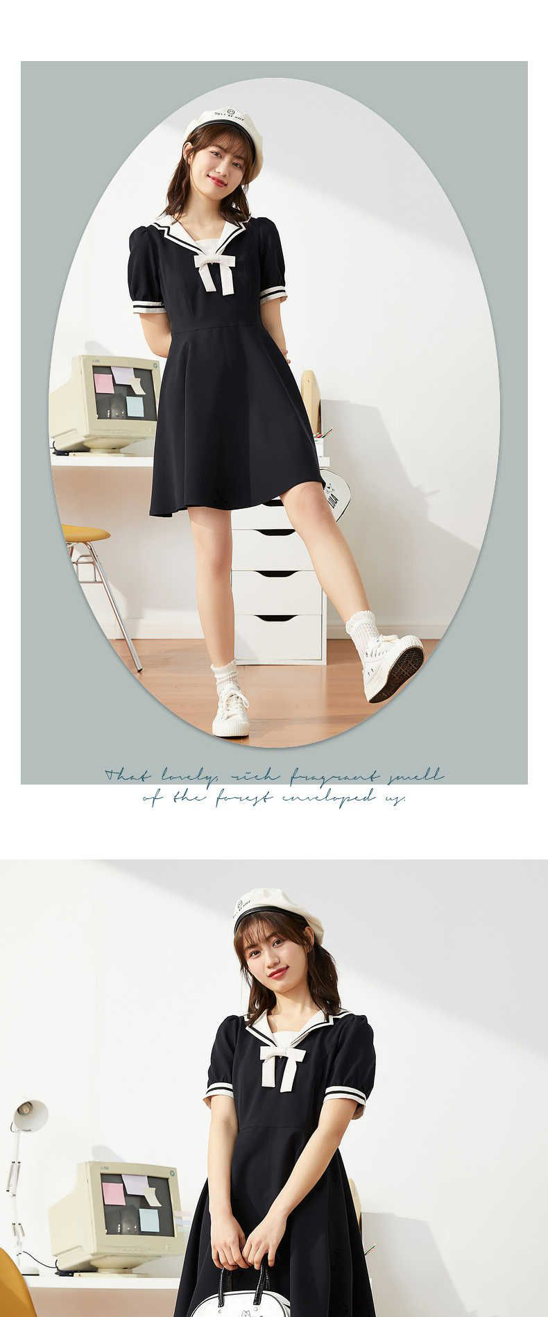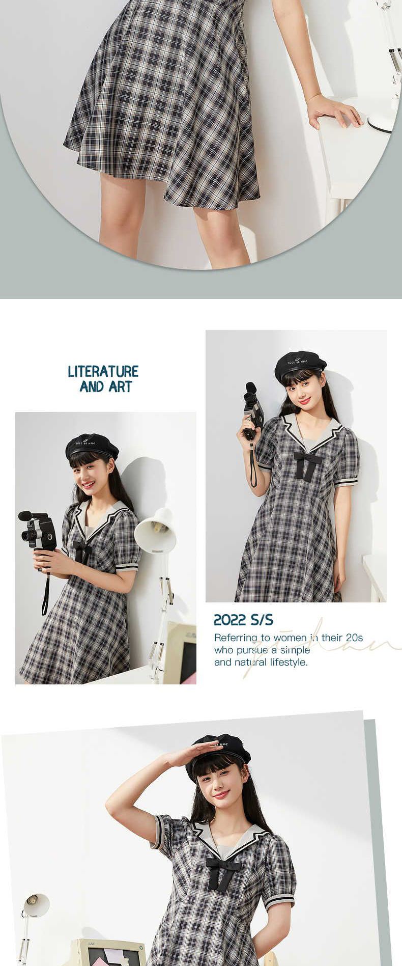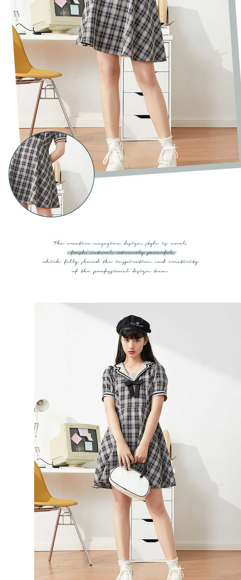 ZIHAN紫涵格纹收腰连衣裙女2022夏季新撞色织带甜美约会裙子蝴蝶结少女04AS202