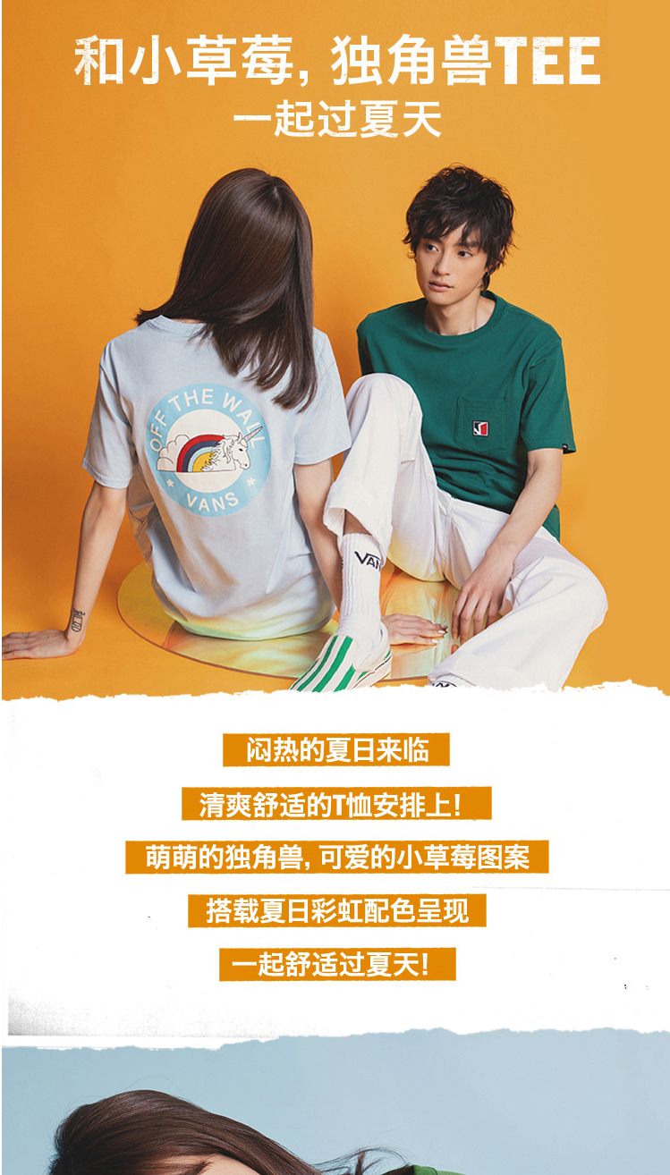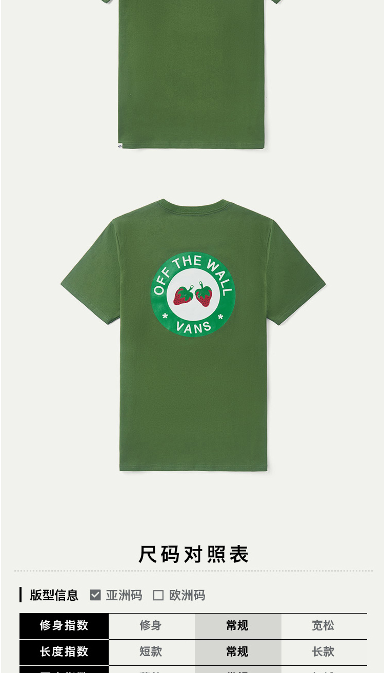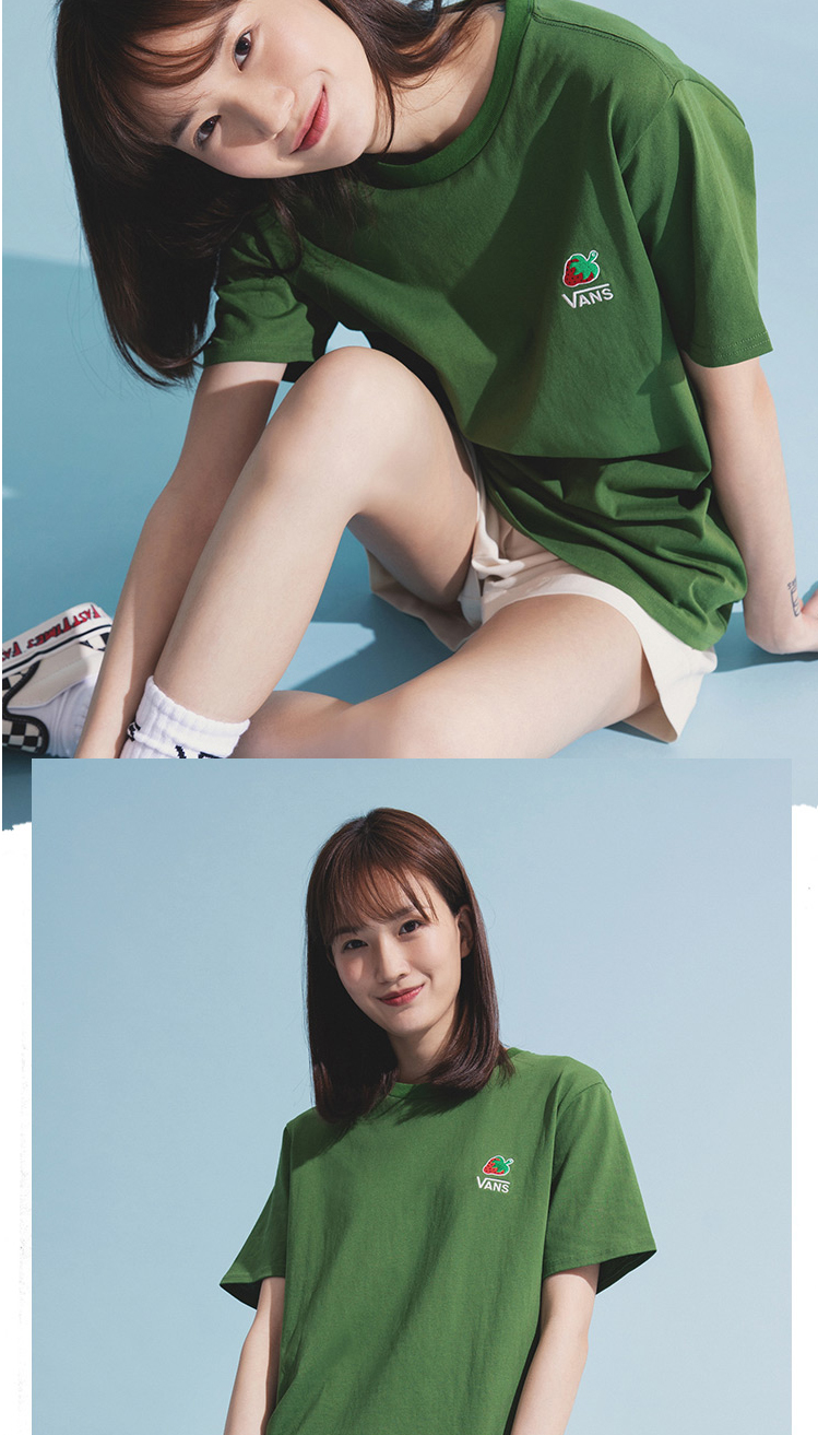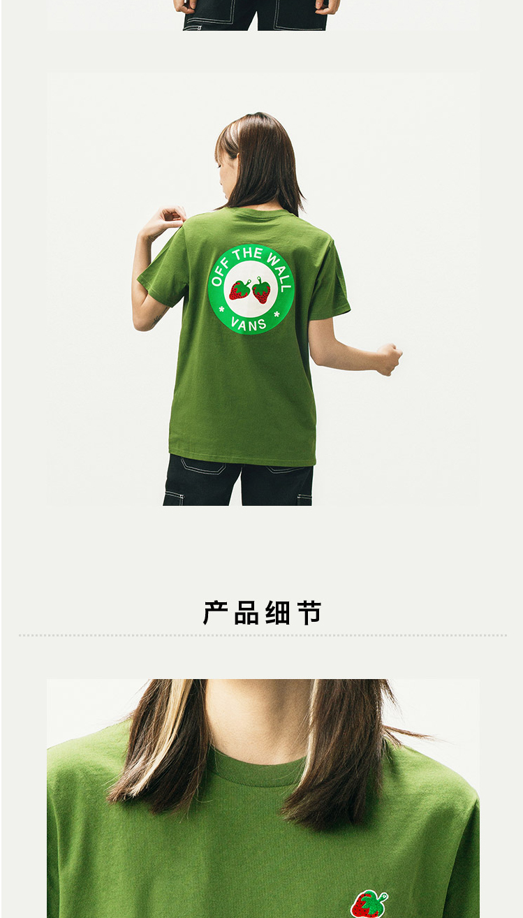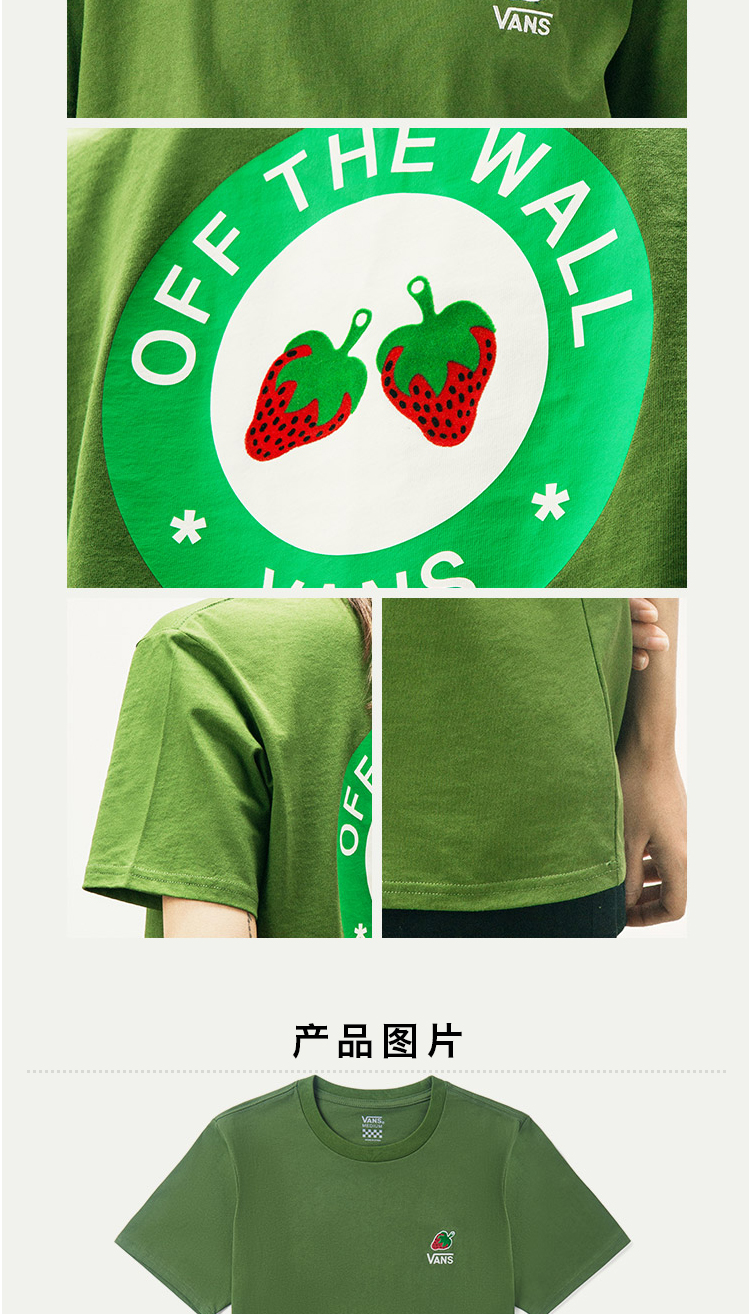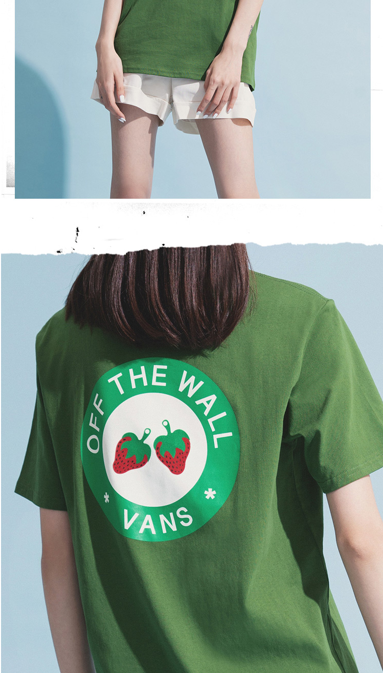 VANS牛油果绿小草莓男女情侣短袖T恤VN0A4URUZQW