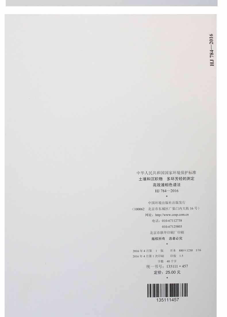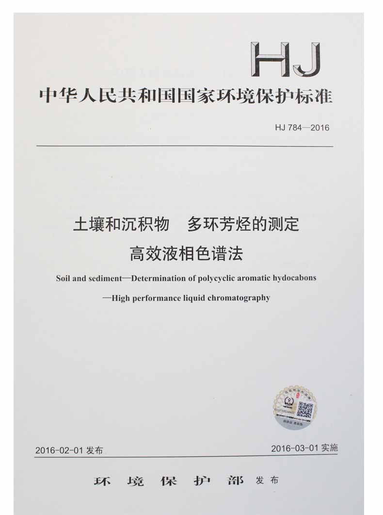 HJ 784-2016 土壤和沉积物 多环芳烃的测定 高效液相色谱法 国家标准 国标 GB 环境保护 135111457